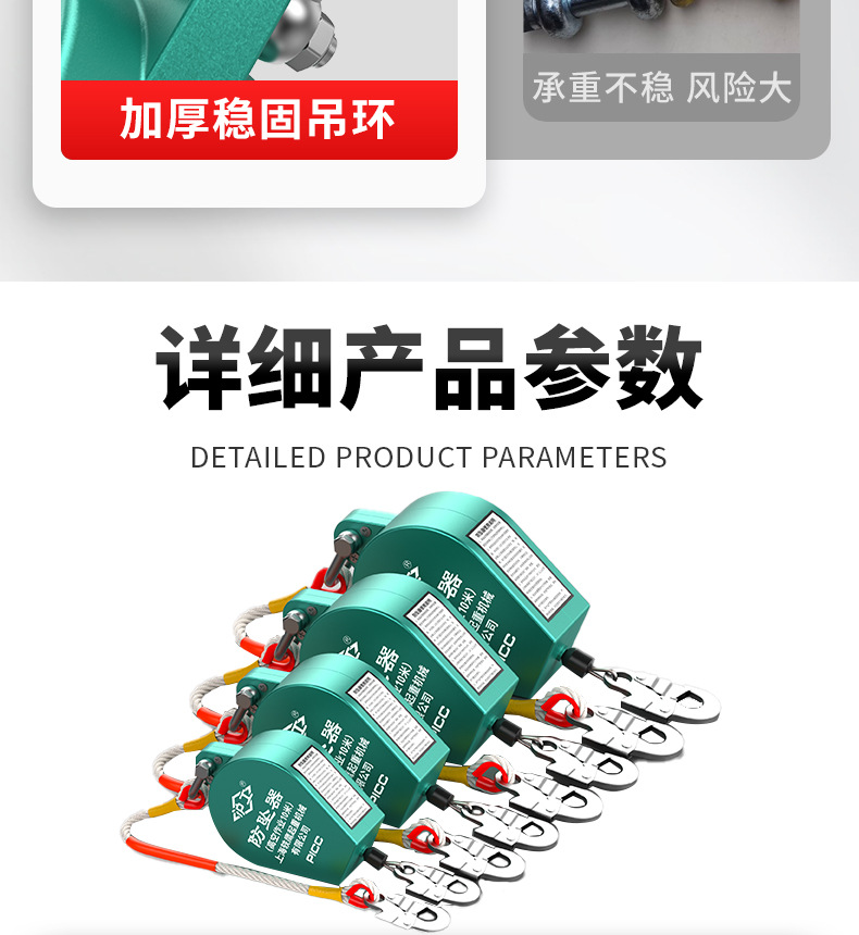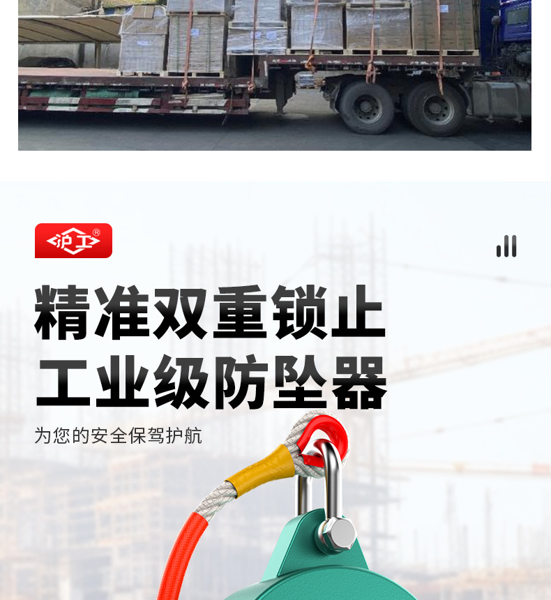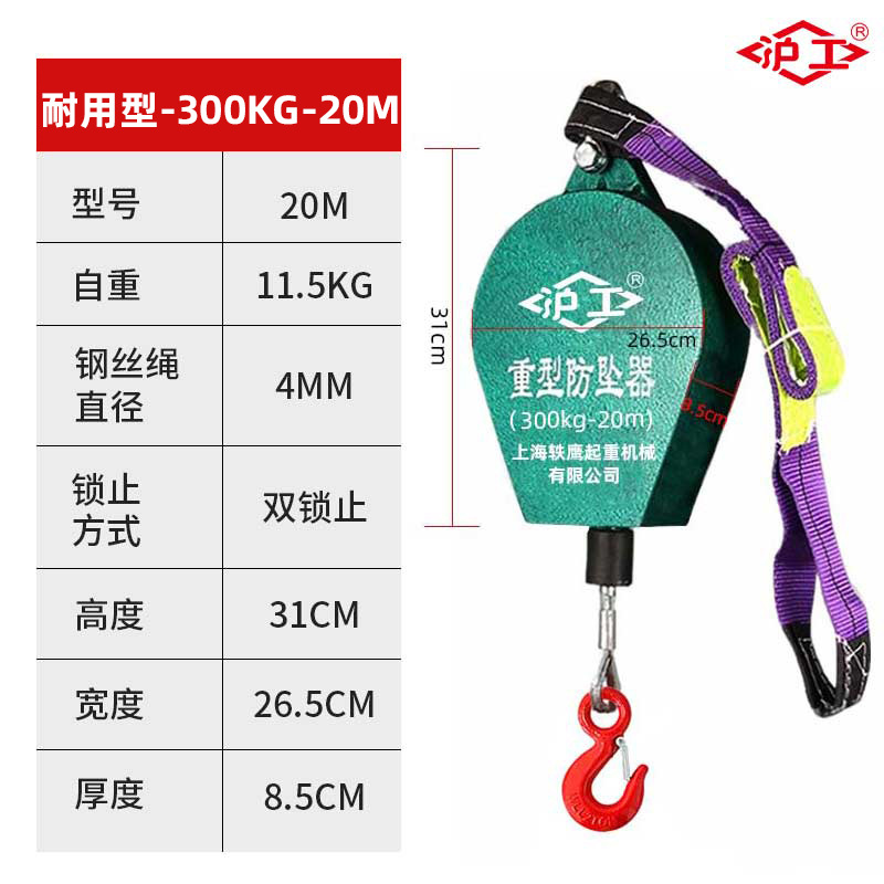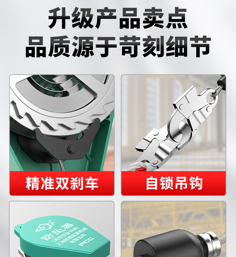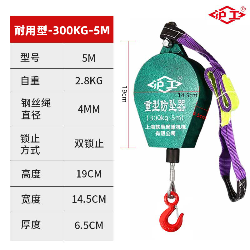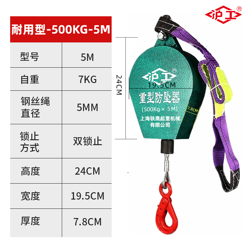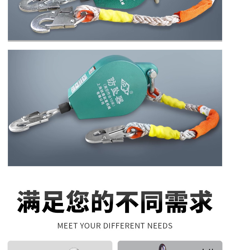 商品名称: 沪工速差自锁器 双锁止防护 安全绳高空作业器 防坠器