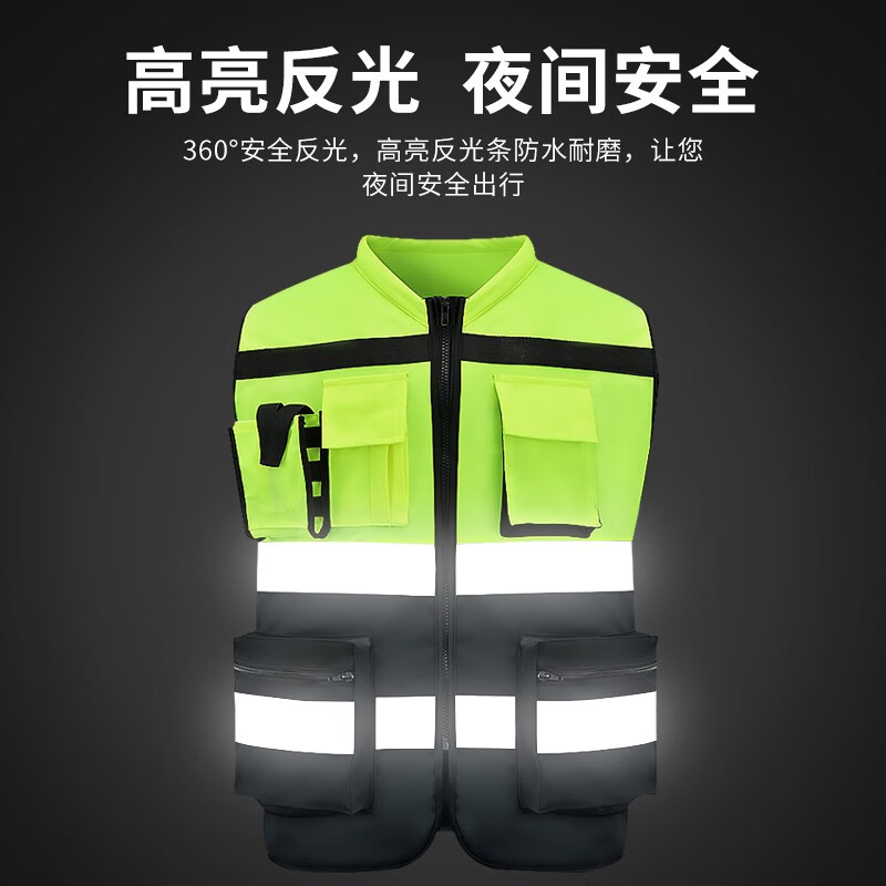 精编布高亮多口袋反光马甲均码 可定制反光背心