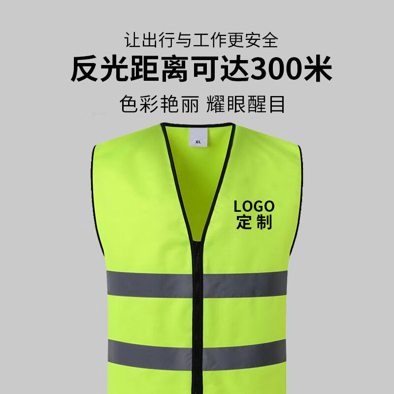 针织布拉链款双肩双腰反光马甲 网格布反光背心 均码