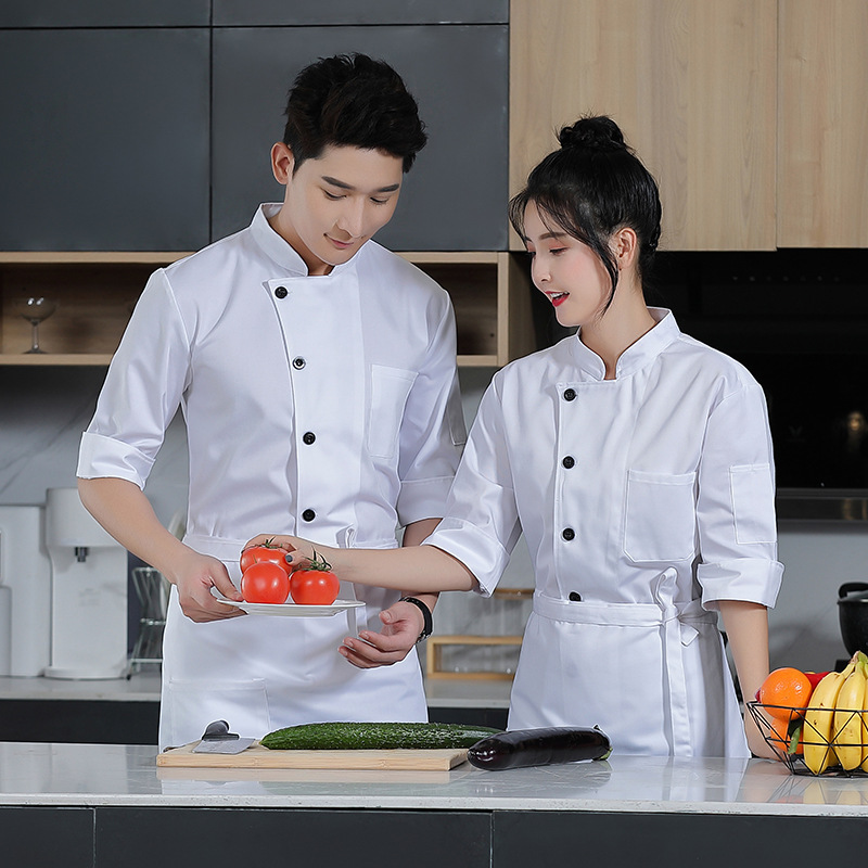厨师服 厨房酒店夏装 工作服七分袖厨师服 装糕点师傅厨师后厨工装