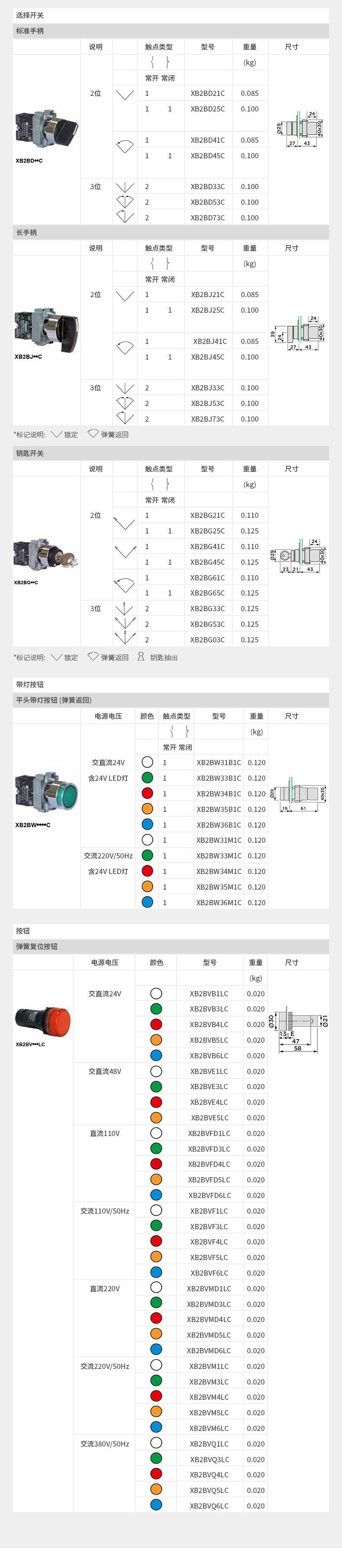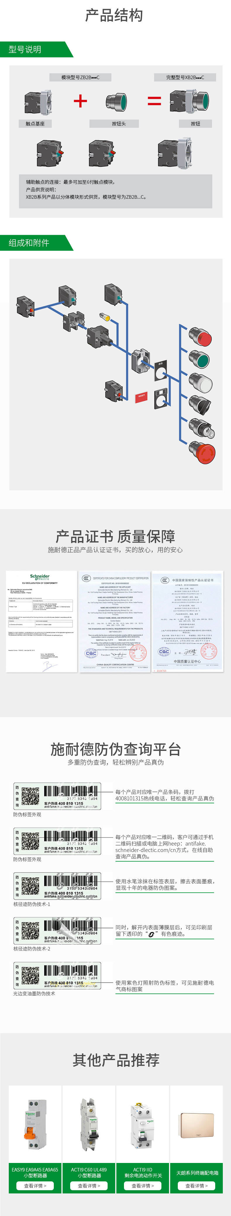 商品名称:施耐德开关金属头按钮选择开关 绿色LED指示灯