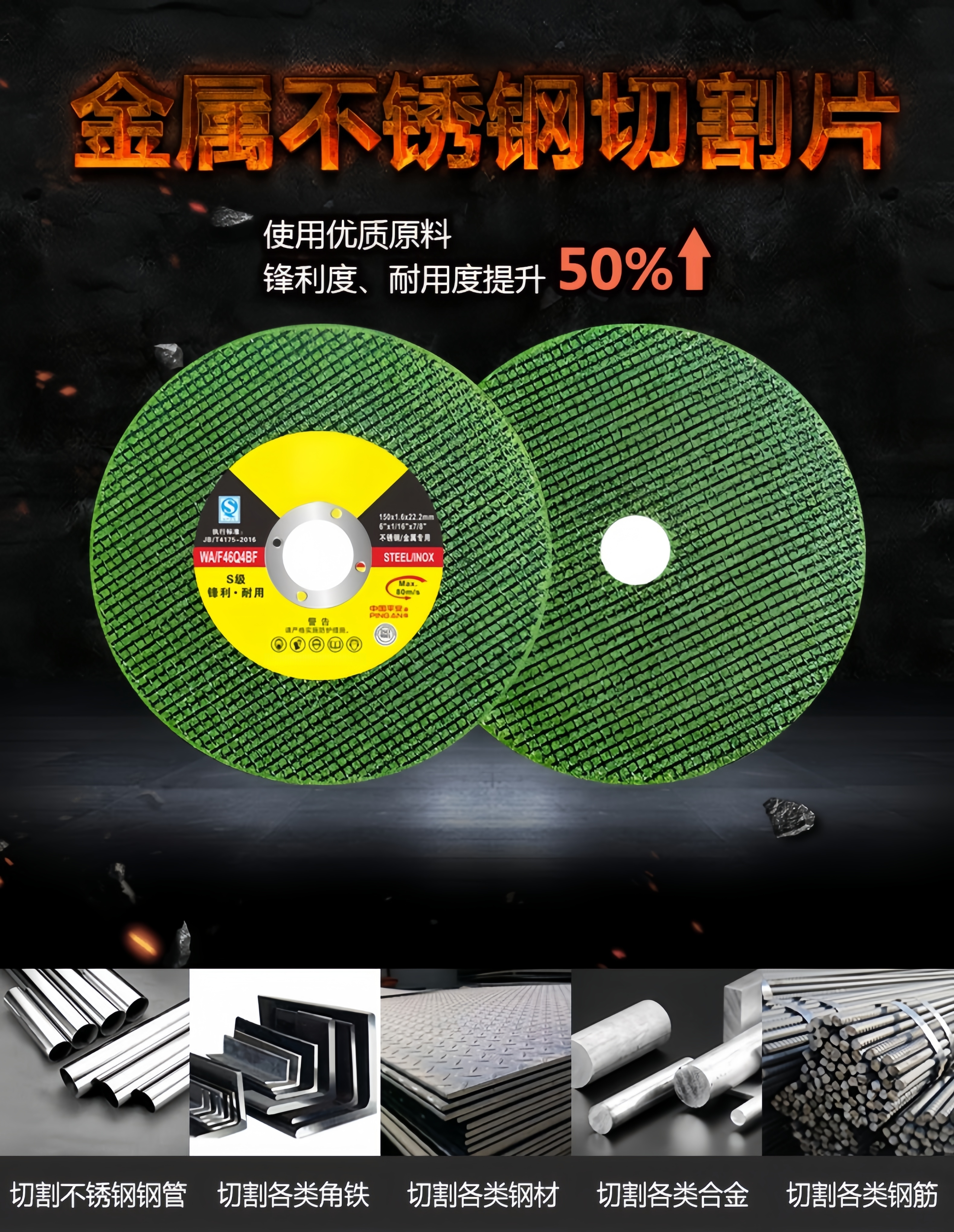 包装清单:1金鹏150*1.5*22mm 绿片 红片 黑片树脂切割片 砂轮片