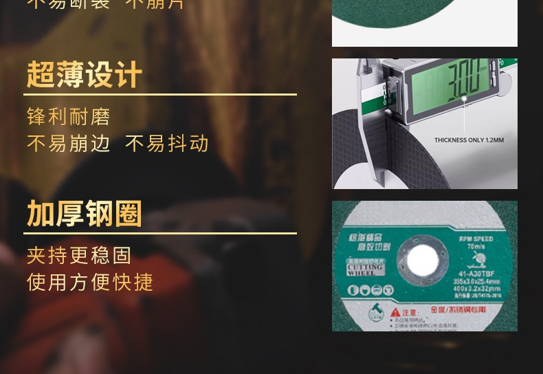 包装清单:1金鹏355*3*25.4mm 绿片红片黑片树脂切割片 耐用耐磨 树脂砂轮切割片 砂轮片