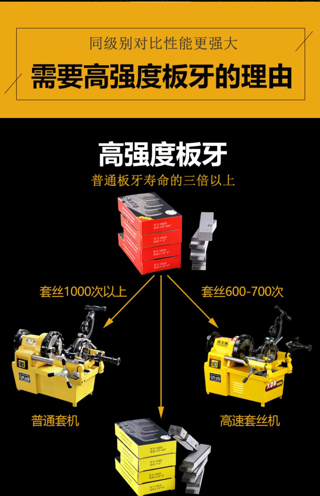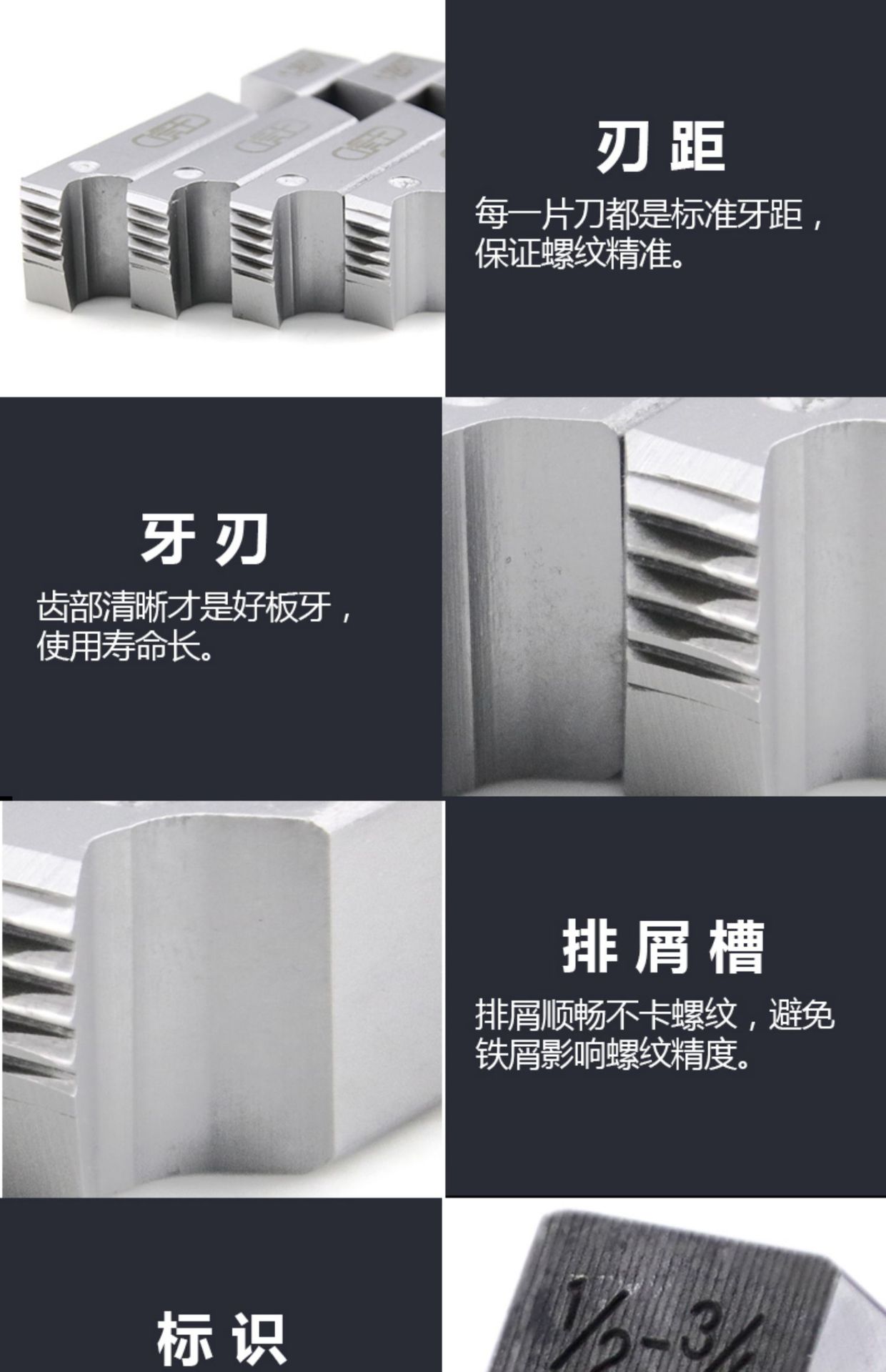 包装清单:1 虎王电动套丝机板牙 管螺纹板牙 镀锌钢管铁水管开牙器