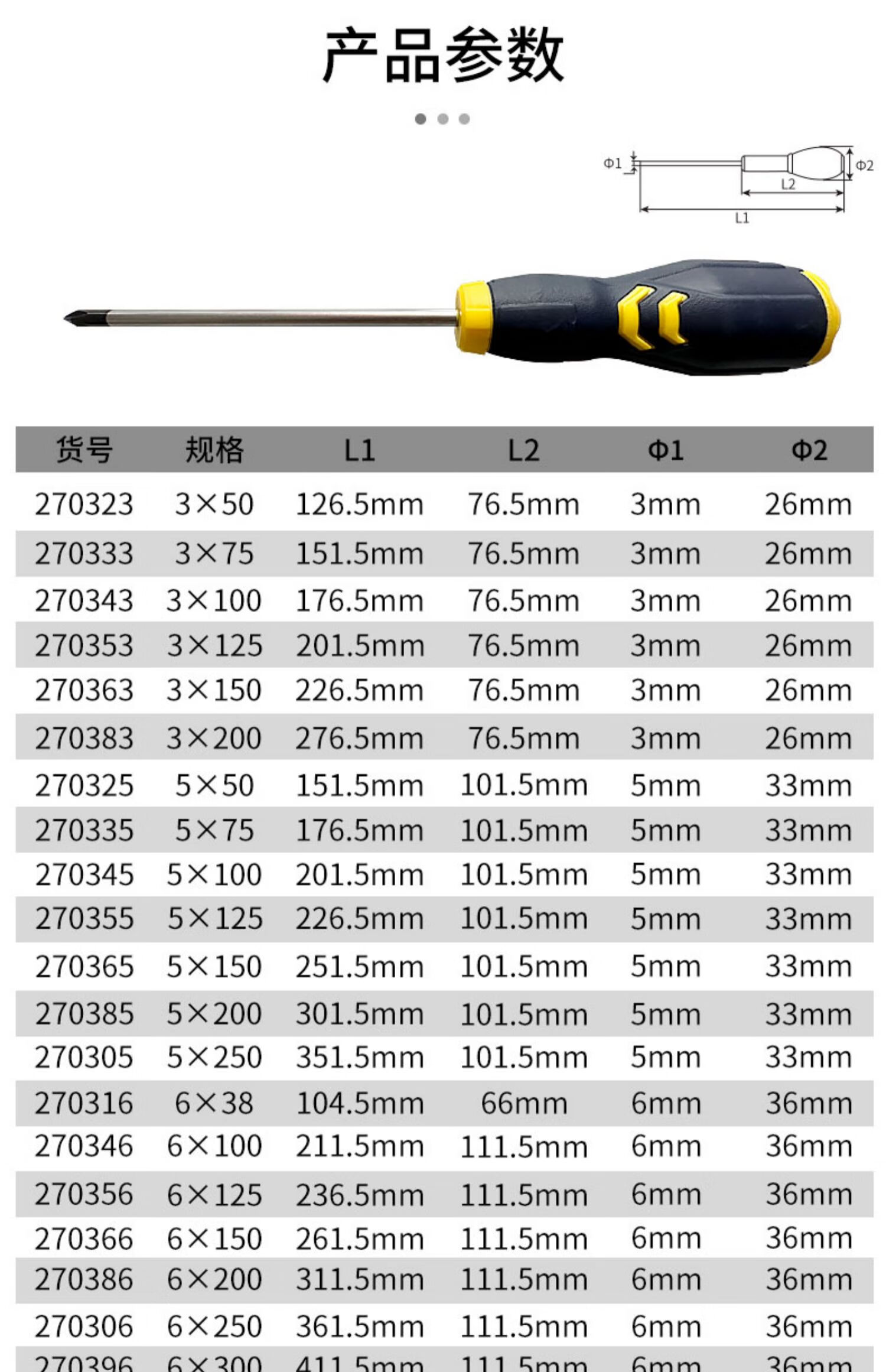 包装清单:1长城精工十字螺丝刀工业级带磁性S2旋具十字头改锥家用螺丝批改刀工具