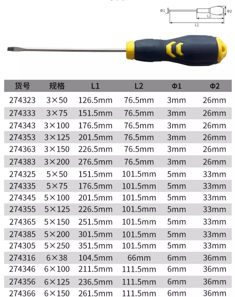 包装清单:1长城精工一字螺丝刀加长小螺丝批改锥起子大号家用改刀3mm5/6/8寸