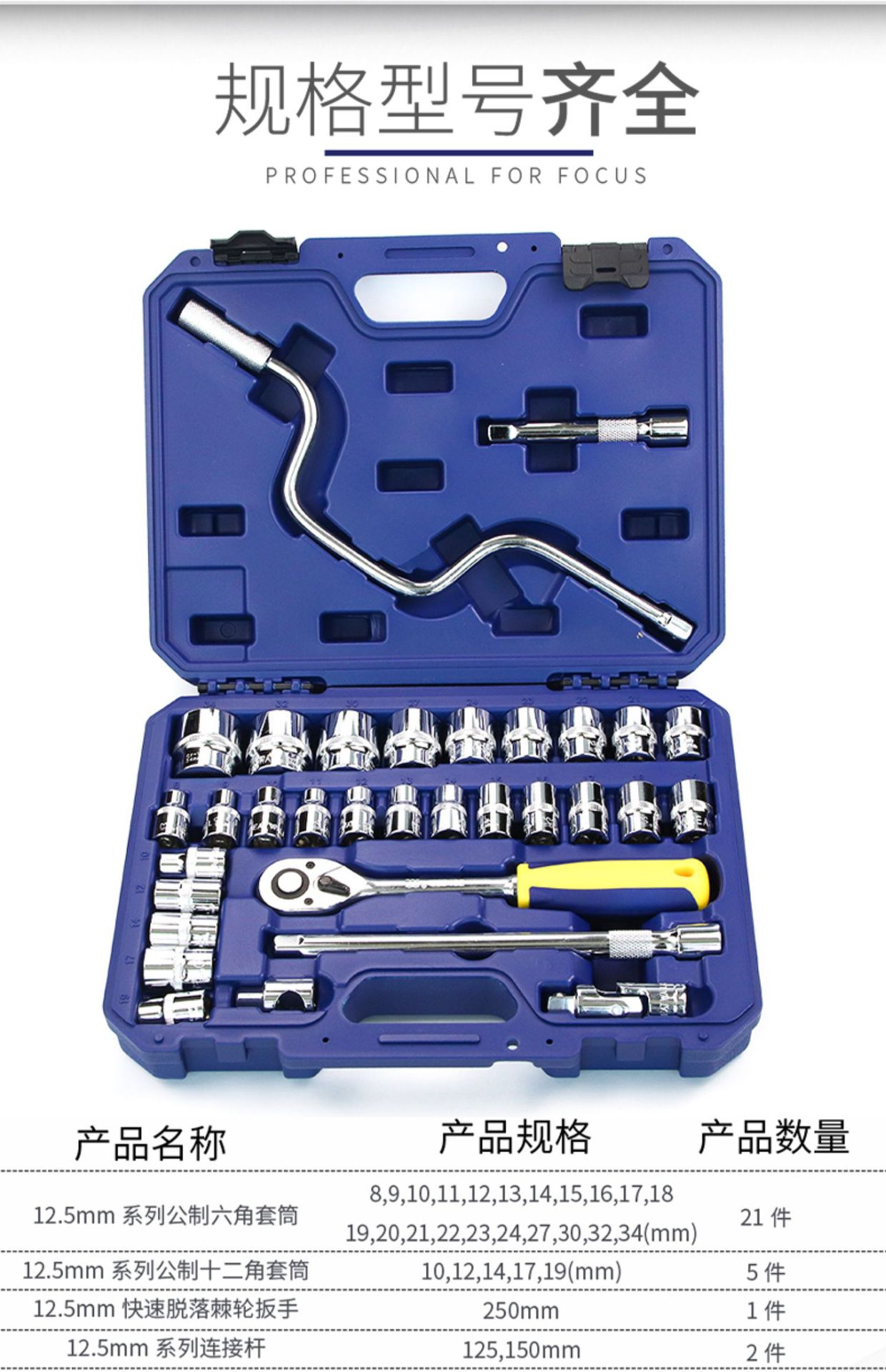 包装清单:1长城精工32件套筒组套套头工具套装棘轮扳手套筒头组合多功能