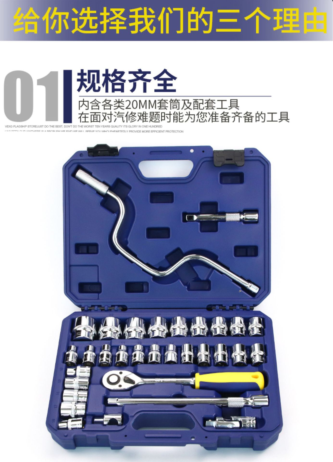 商品名称:长城精工32件套筒组套套头工具套装棘轮扳手套筒头组合多功能