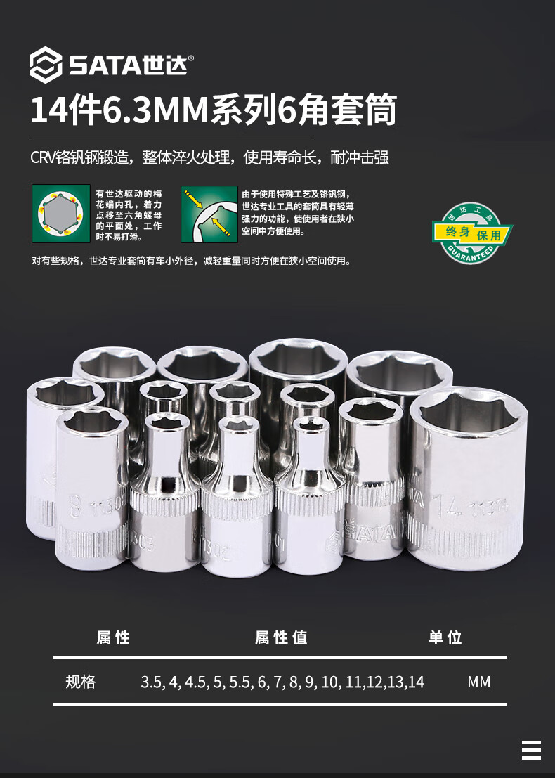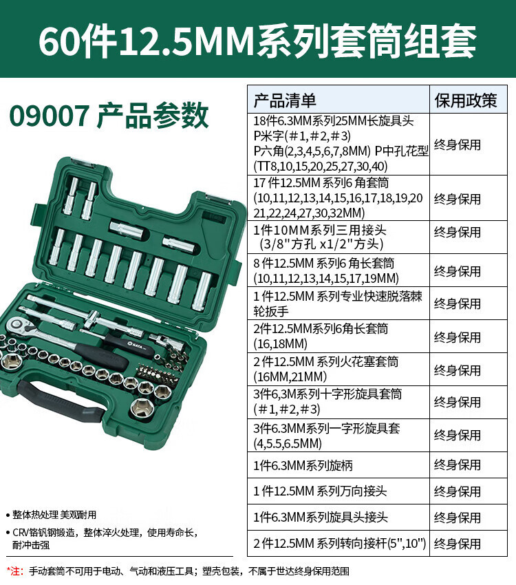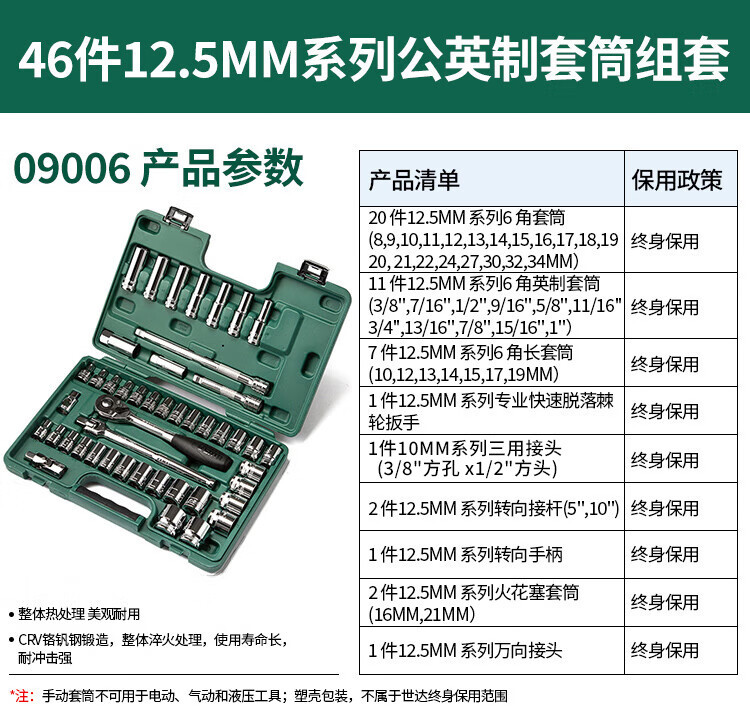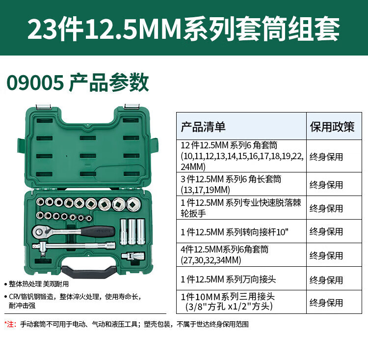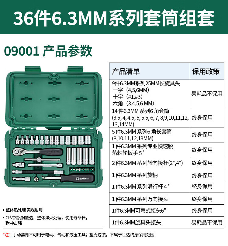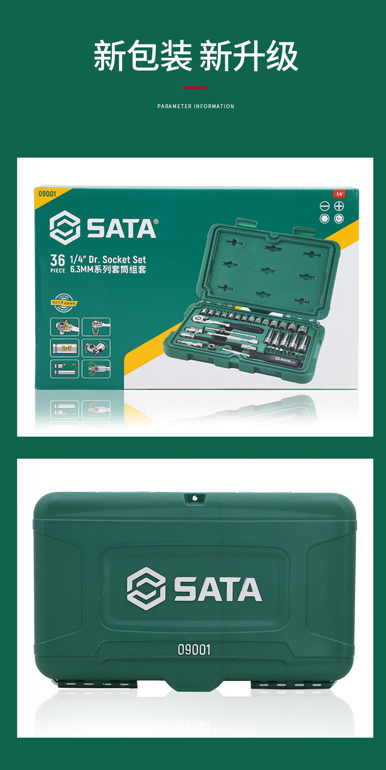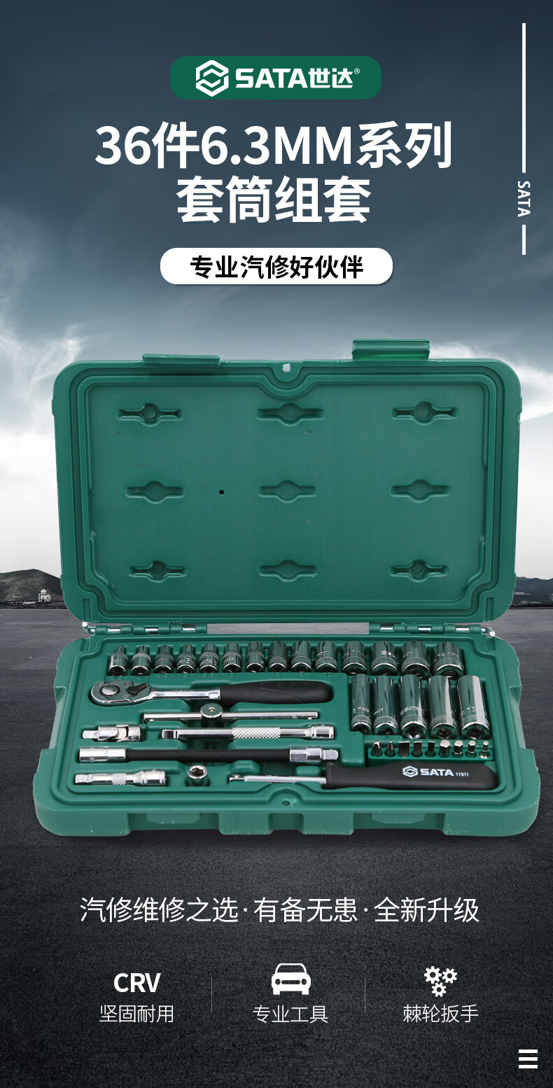 包装清单:1世达SATA 汽修机修36件套筒组套棘轮万向接头