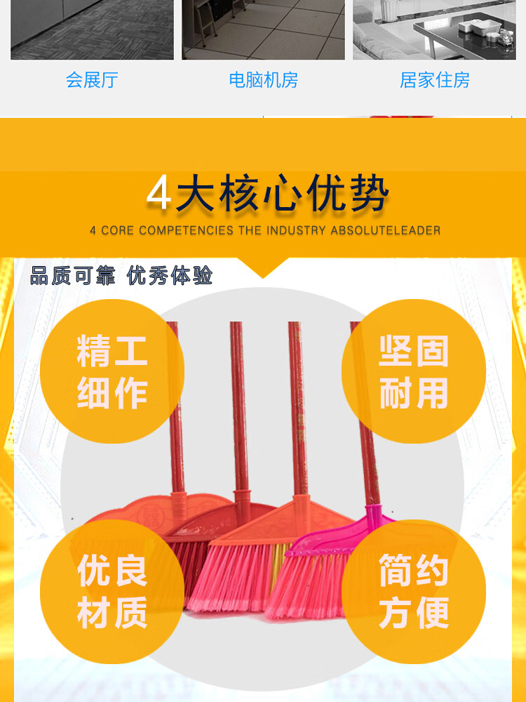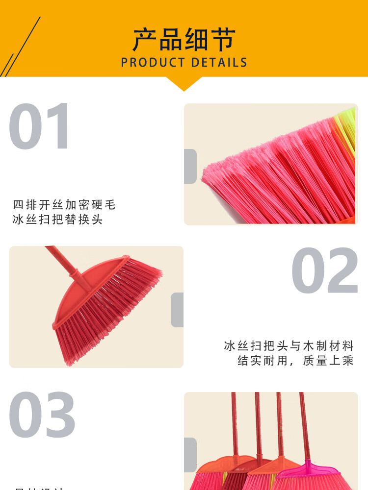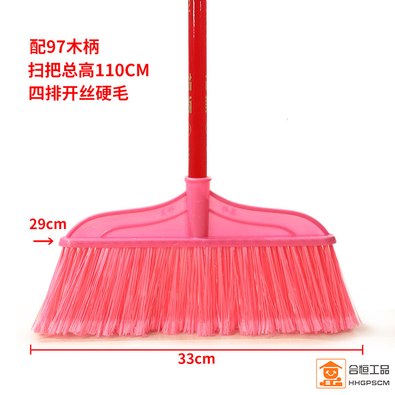 包装清单:1雷璟 硬毛塑料扫把 清洁环卫扫水扫帚 开丝四排硬毛头