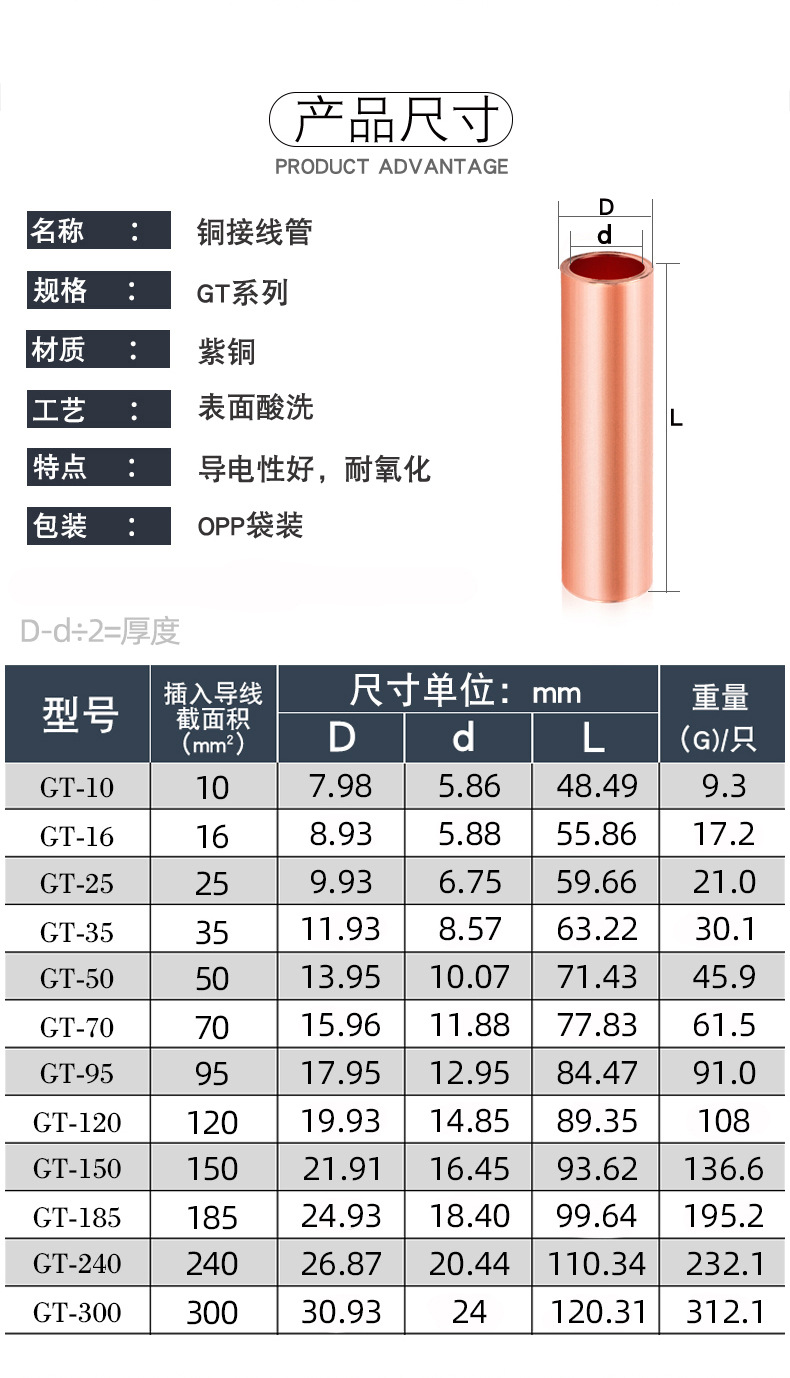 包装清单:1鑫颖 紫铜连接管 电缆铜连接管电缆接线管 导线压接管 电缆铜压接线端子