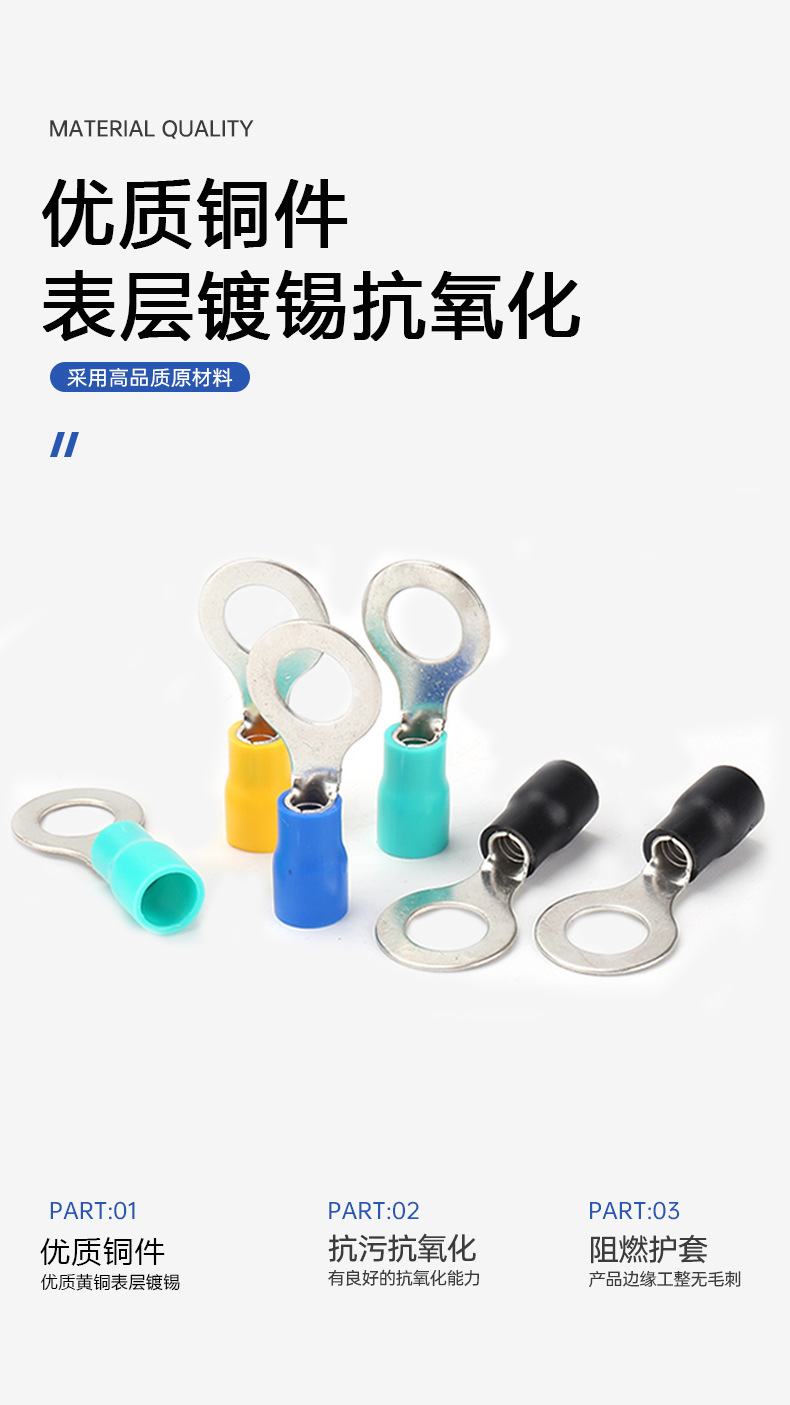 包装清单:1 鑫颖 圆形预绝缘端子 冷压接线端子 圆型预绝缘端头铜鼻子
