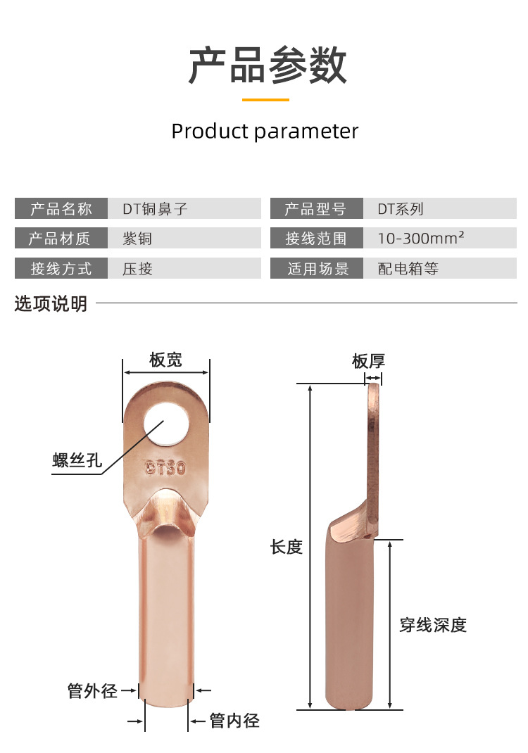 商品名称:鑫颖 DT铜鼻子 紫铜铜鼻子紫铜闭口接线端子铜直接管 线耳 电线电缆接头