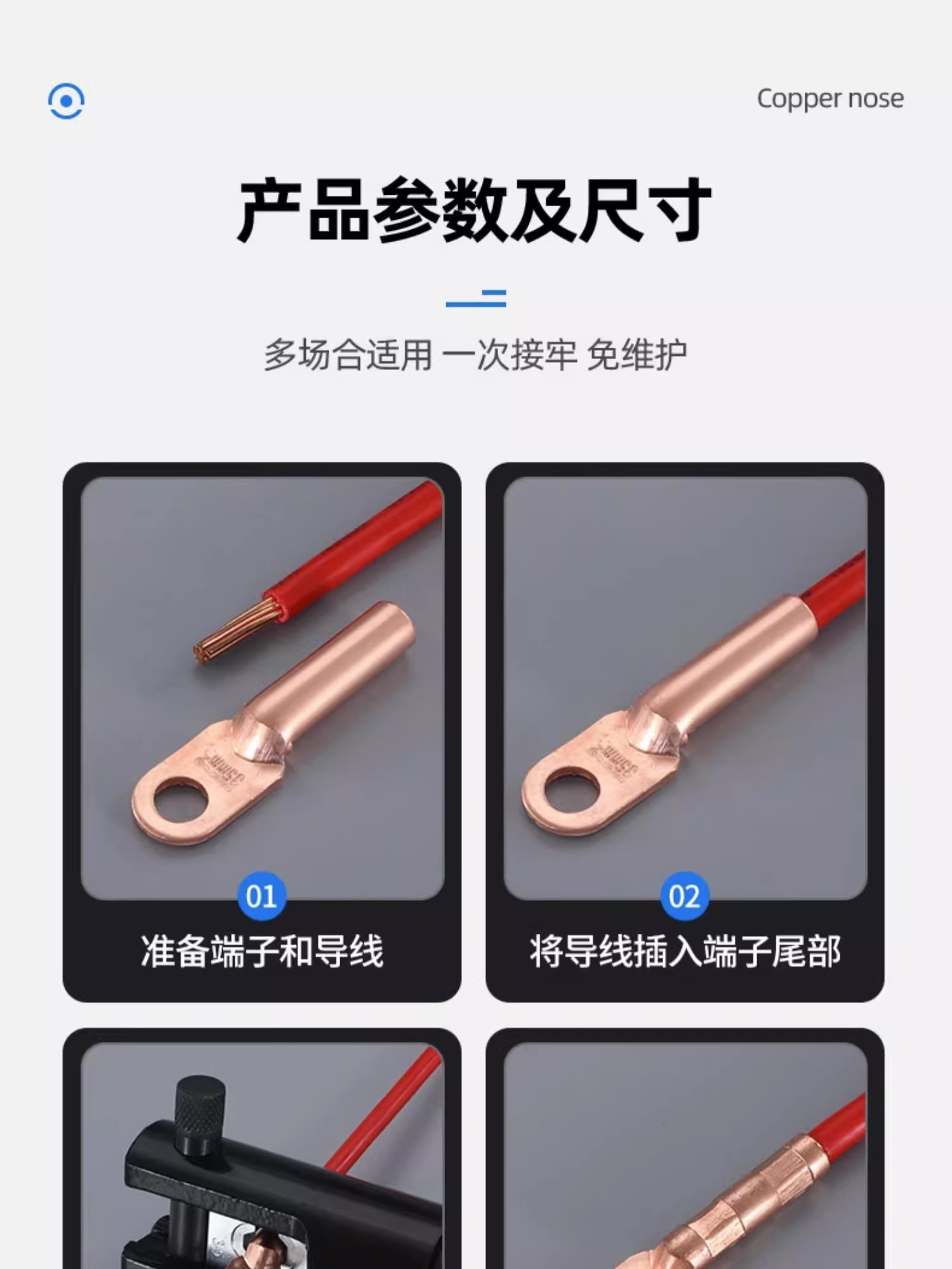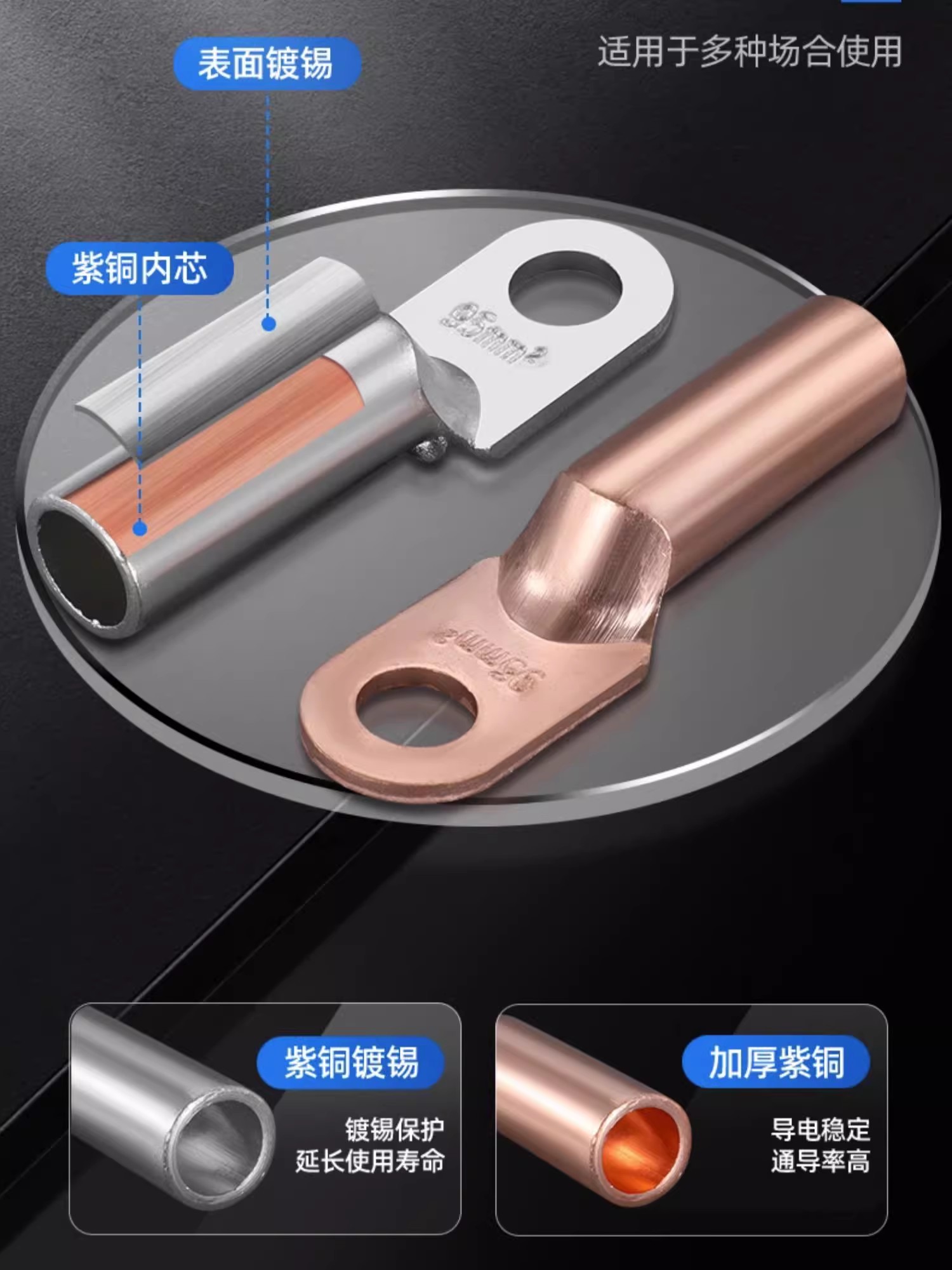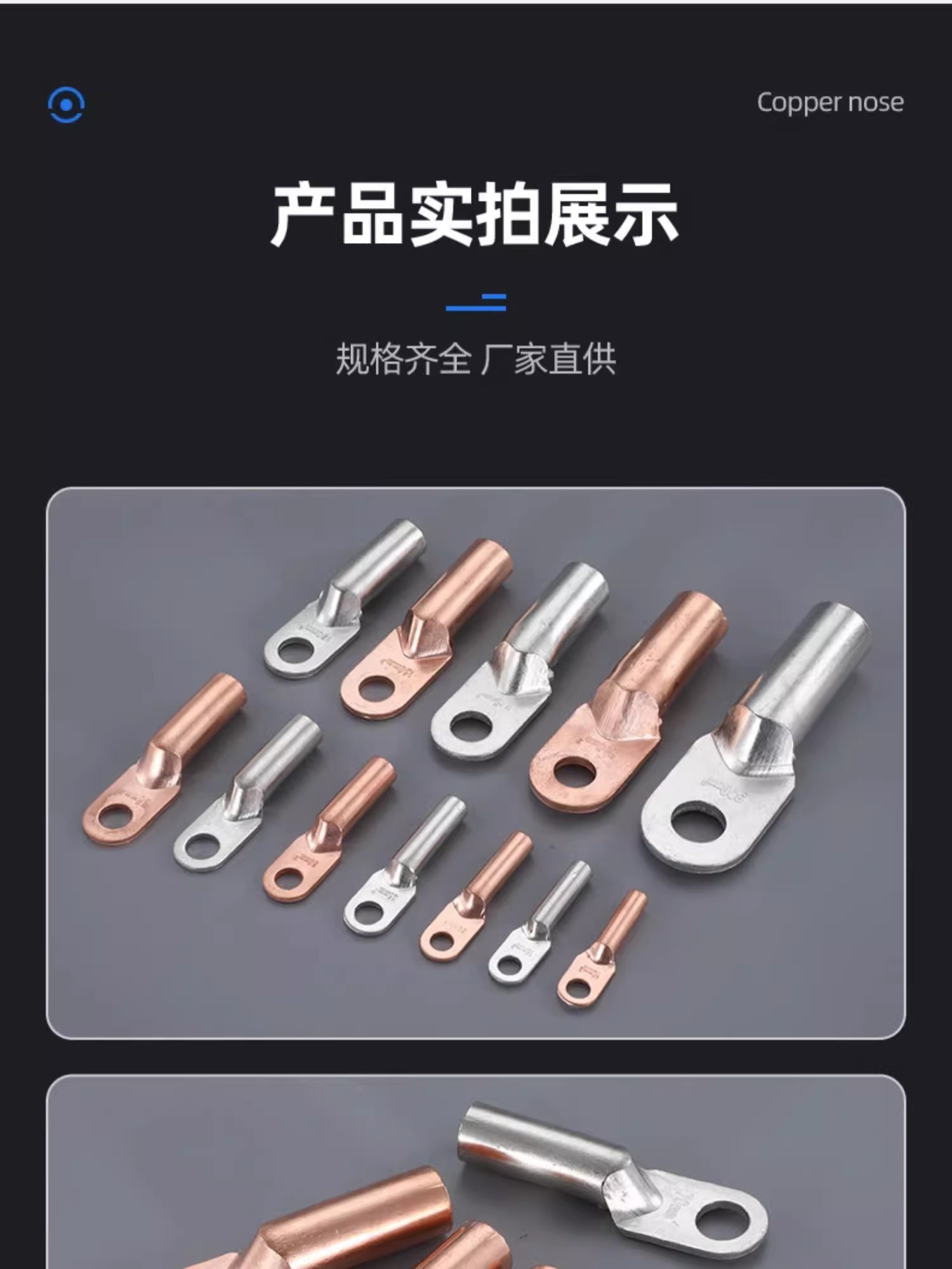 包装清单:1鑫颖DT紫铜镀锡铜鼻子10-500平方 紫铜闭口接线端子铜直接管 线耳 电线电缆接头