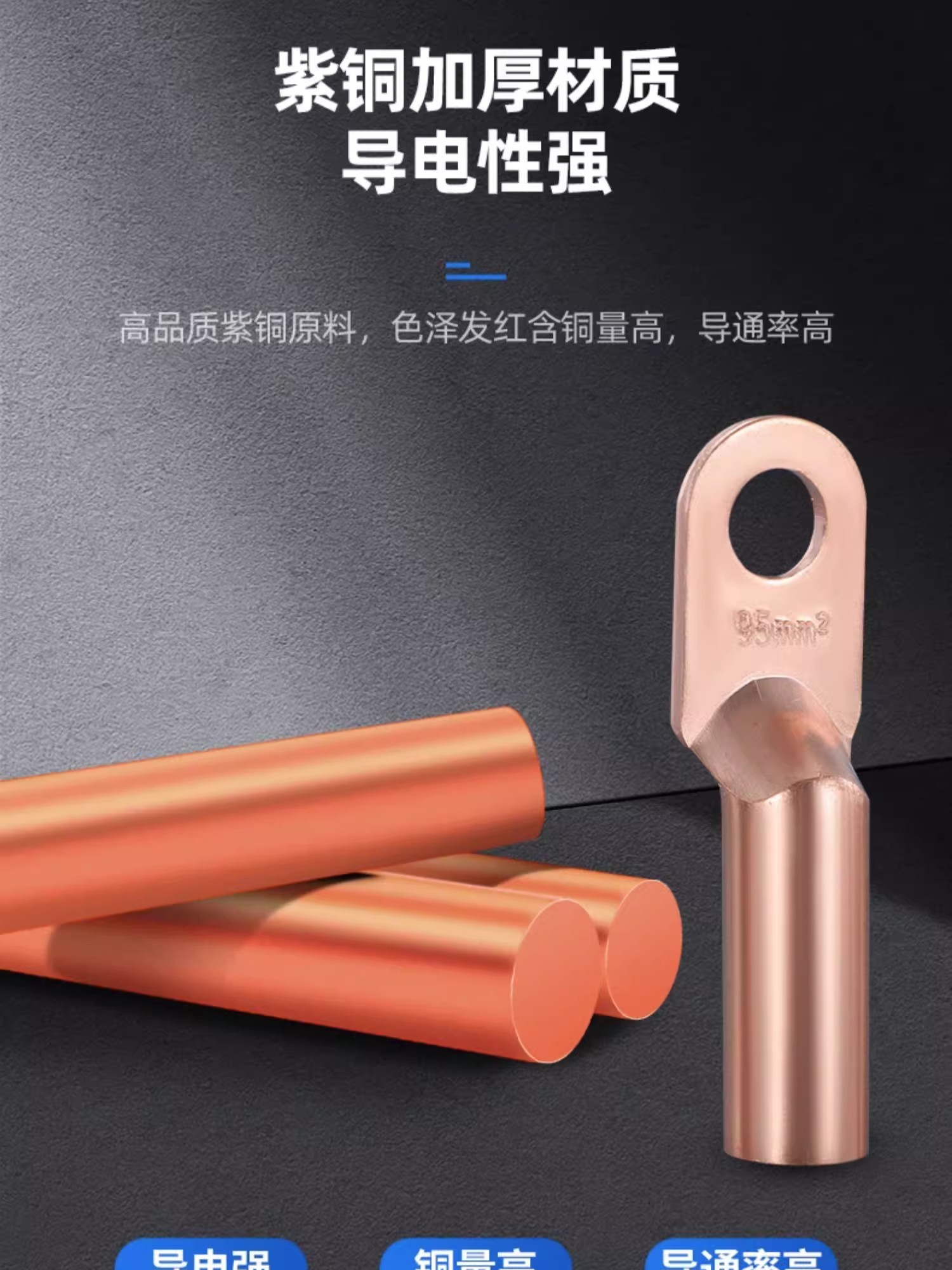 商品名称:鑫颖DT紫铜镀锡铜鼻子10-500平方 紫铜闭口接线端子铜直接管 线耳 电线电缆接头