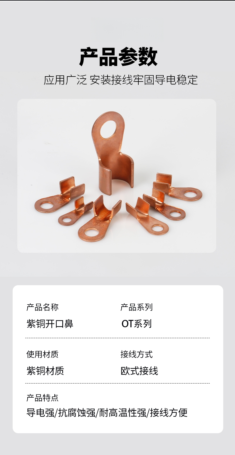商品名称:鑫颖OT系列开口铜鼻子接线端子线鼻子开口鼻铜端子冷压压线紫铜