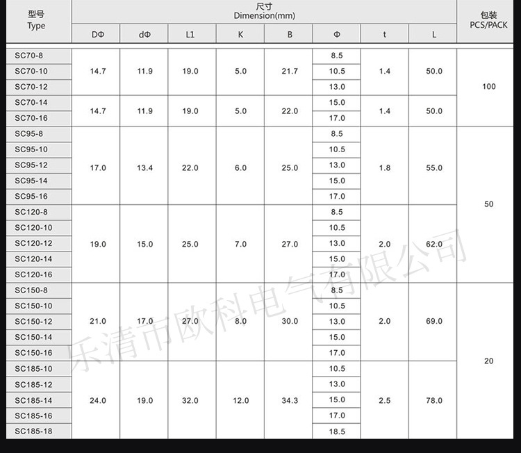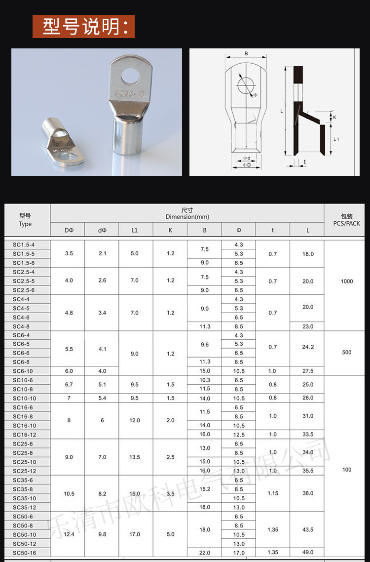 包装清单:1鑫颖窥口铜鼻子SC系列窥口端子接线鼻子铜接线端头