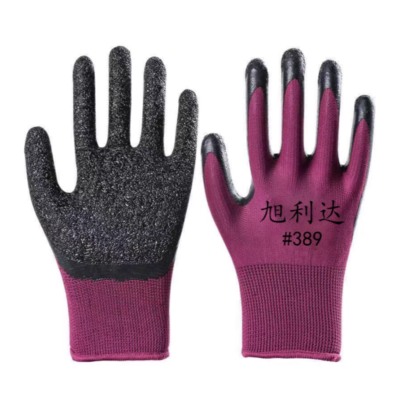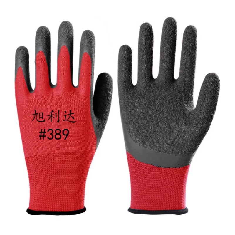 旭利达 389耐磨皱纹劳保手套浸胶防滑胶手套 皱纹389胶手套