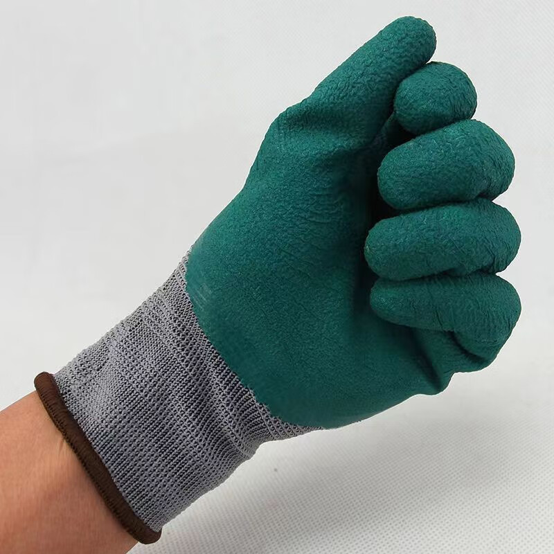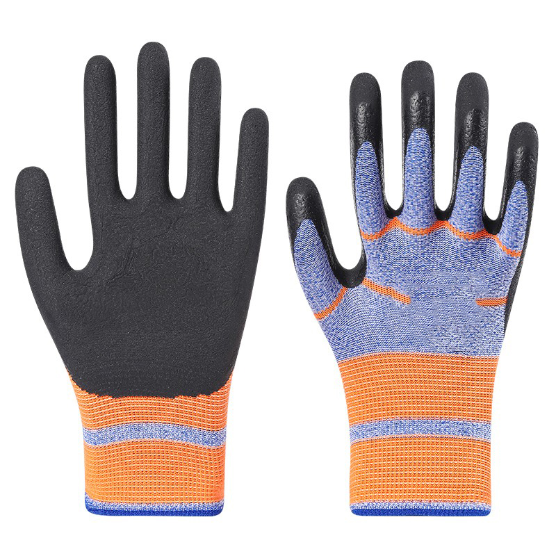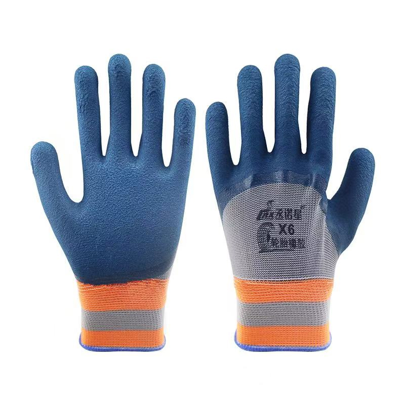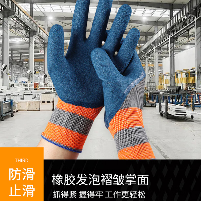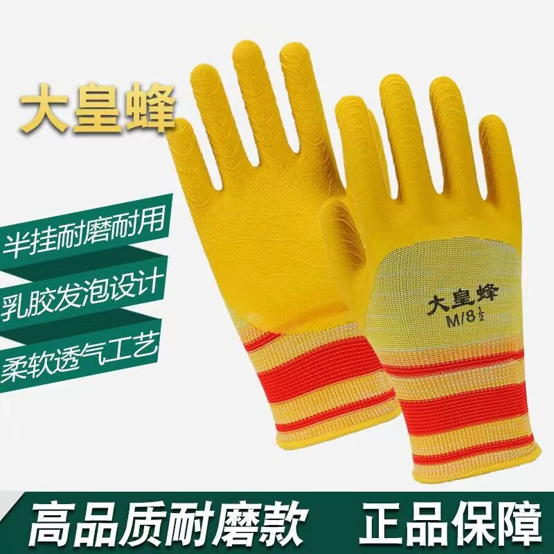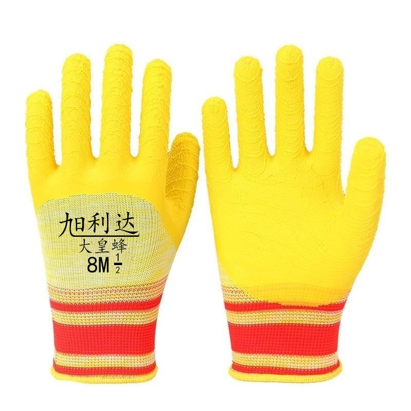 旭利达 透气王加强指乳胶发泡浸胶劳保手套 大黄蜂半挂皱纹手套浸胶劳保防护手套