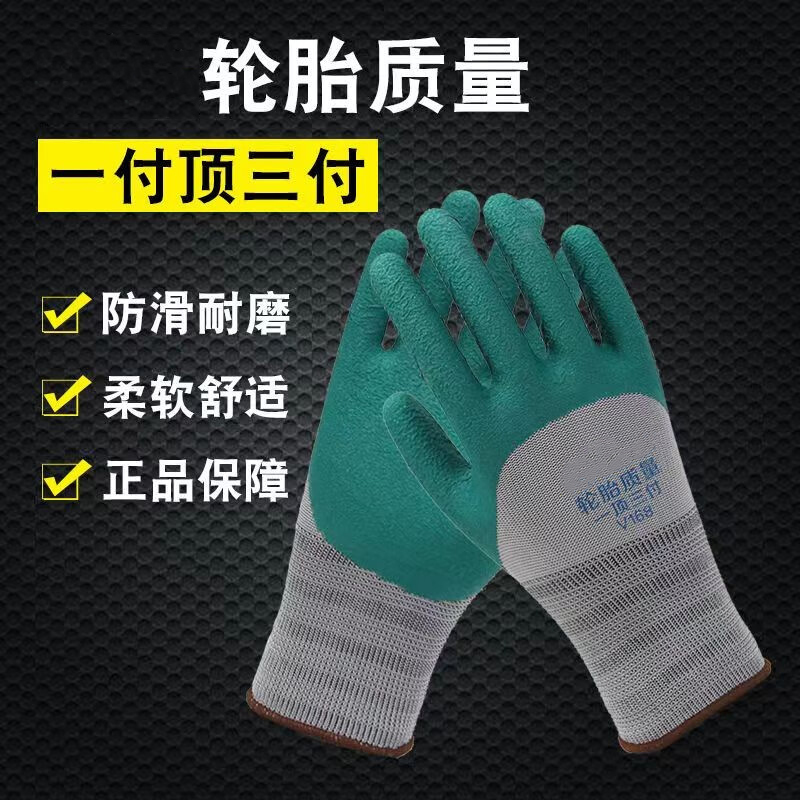 祥旭达 轮胎王橡胶手套耐磨透气 轮胎王平挂胶手套