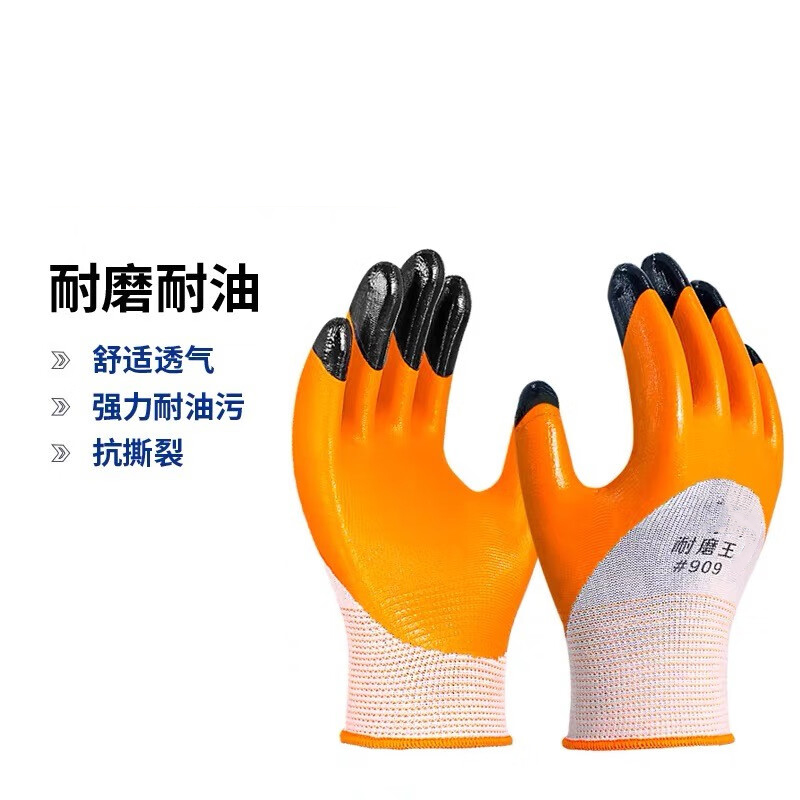 旭利达 丁晴加强指劳保手套耐磨工作防滑加厚橡胶防水耐油 丁晴加指(耐磨王)