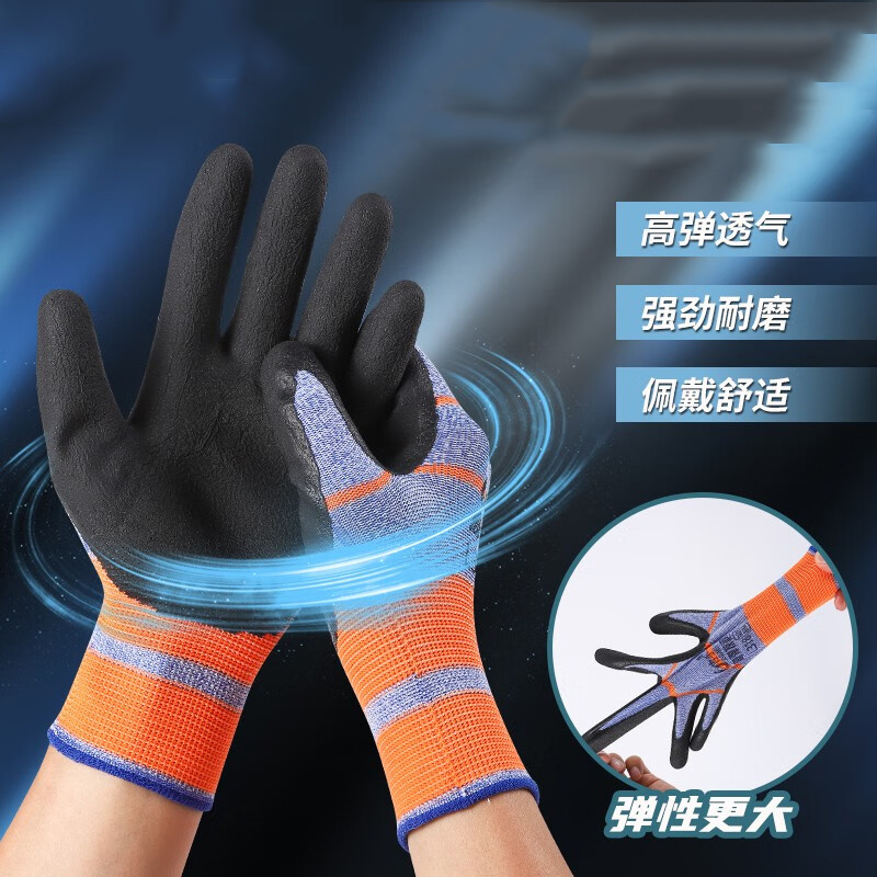 旭利达 达弹力王劳保手套浸胶耐磨乳胶发泡磨砂防滑胶手套 弹力王胶手套