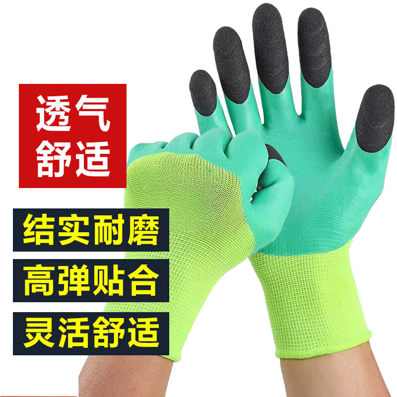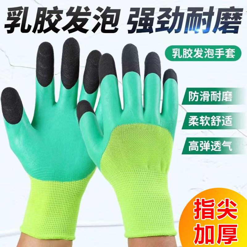 承诺星 橡胶发泡劳保手套防滑耐磨透气工作防护手套 胶手套