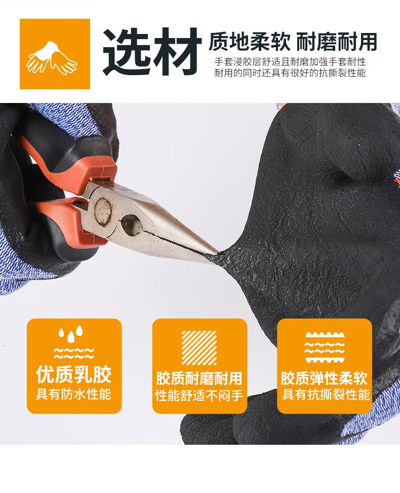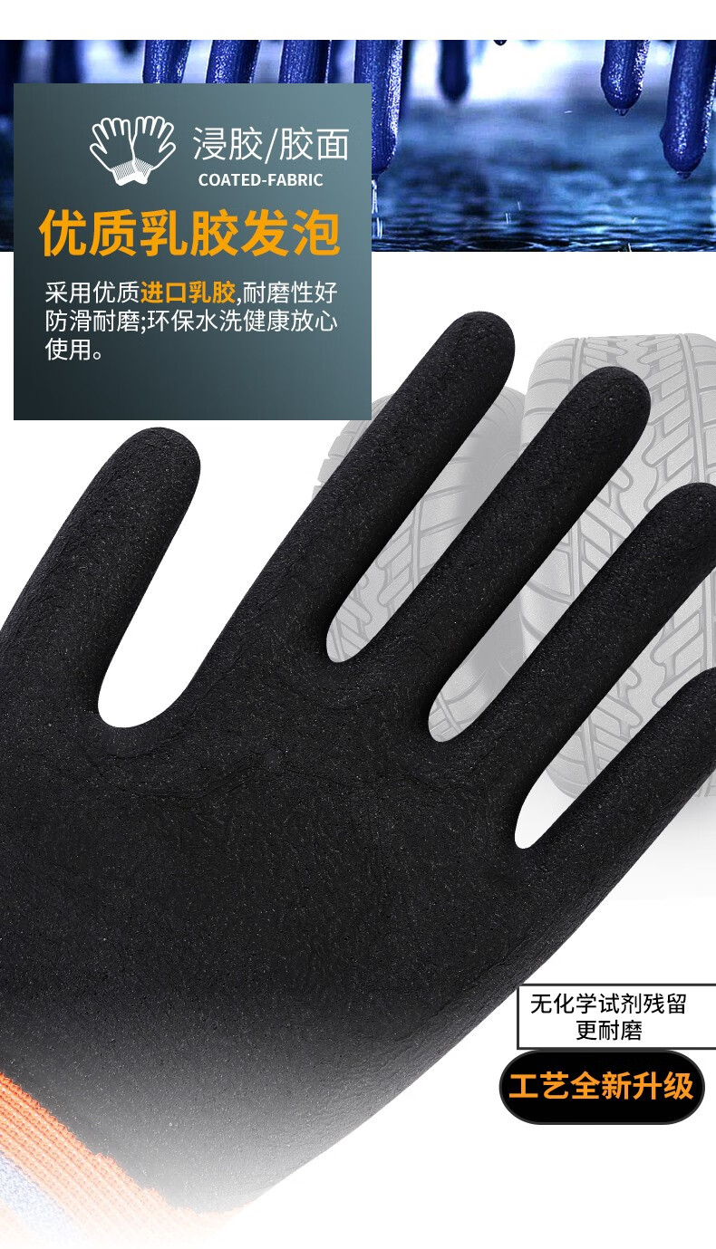 包装清单:1旭利达 达弹力王劳保手套浸胶耐磨乳胶发泡磨砂防滑胶手套 弹力王胶手套