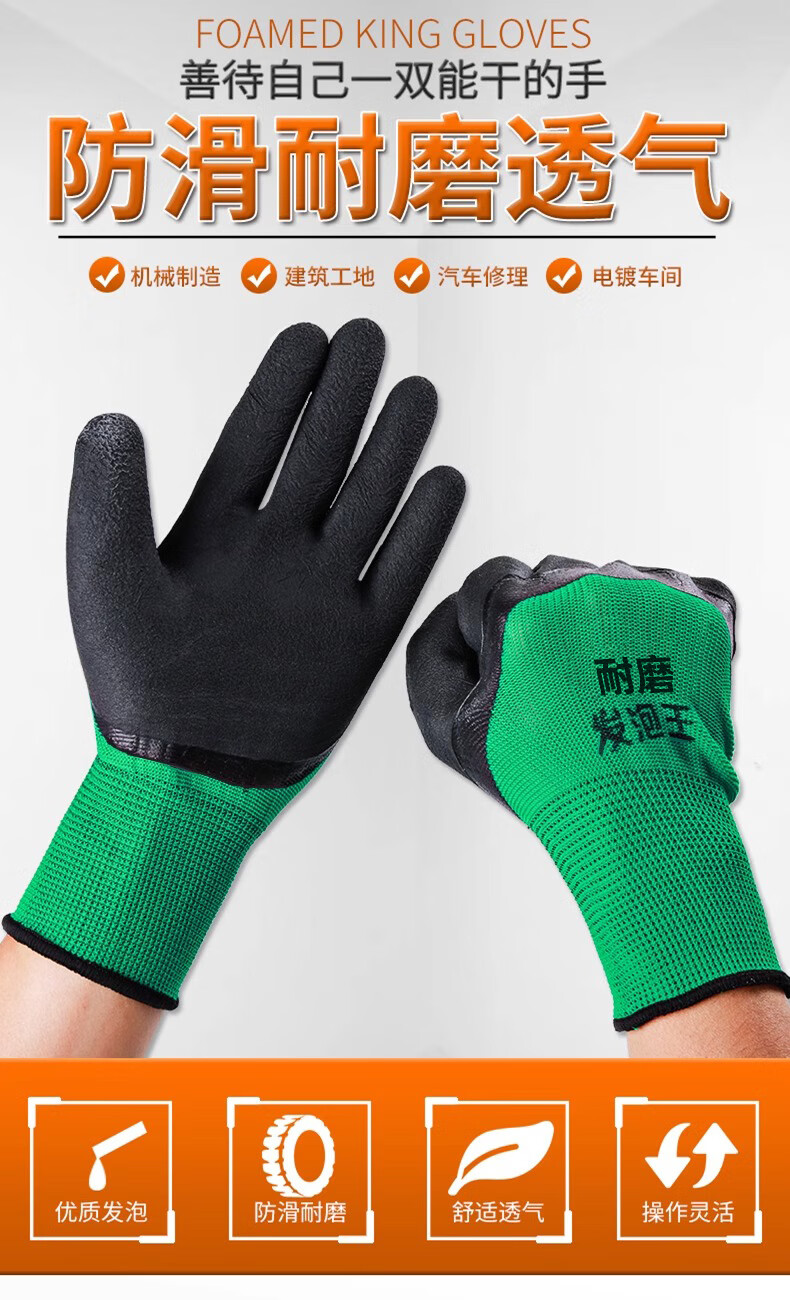 包装清单:1旭利达 尼龙皱纹丁腈发泡胶手套 发泡王 胶手套