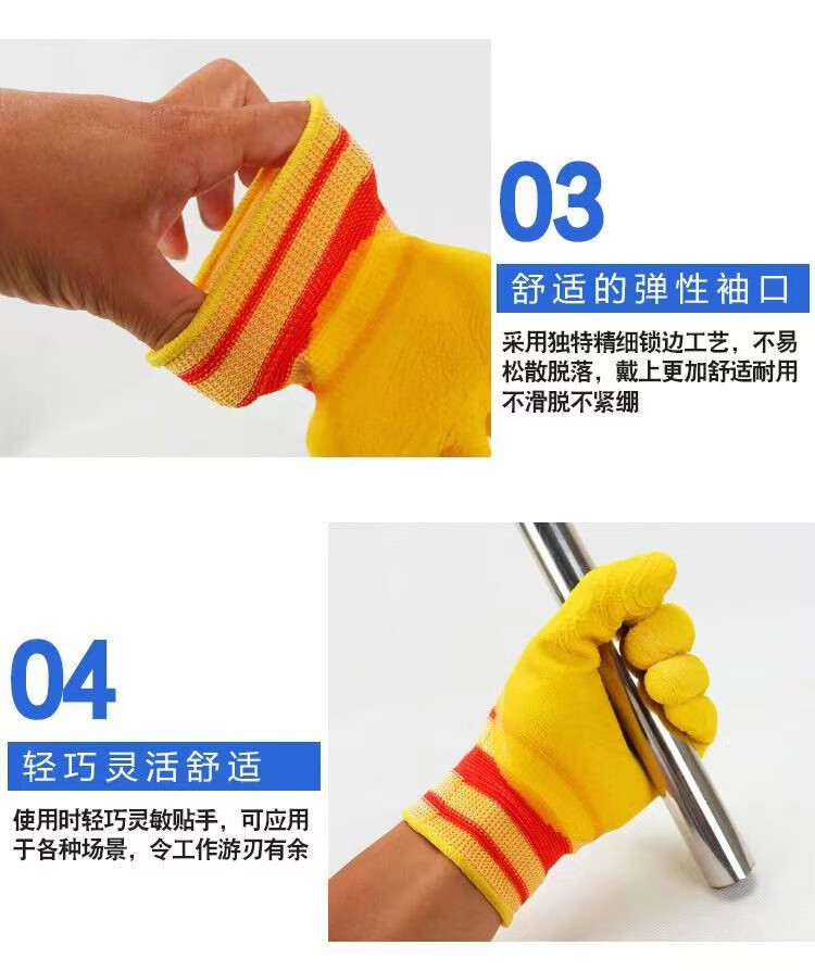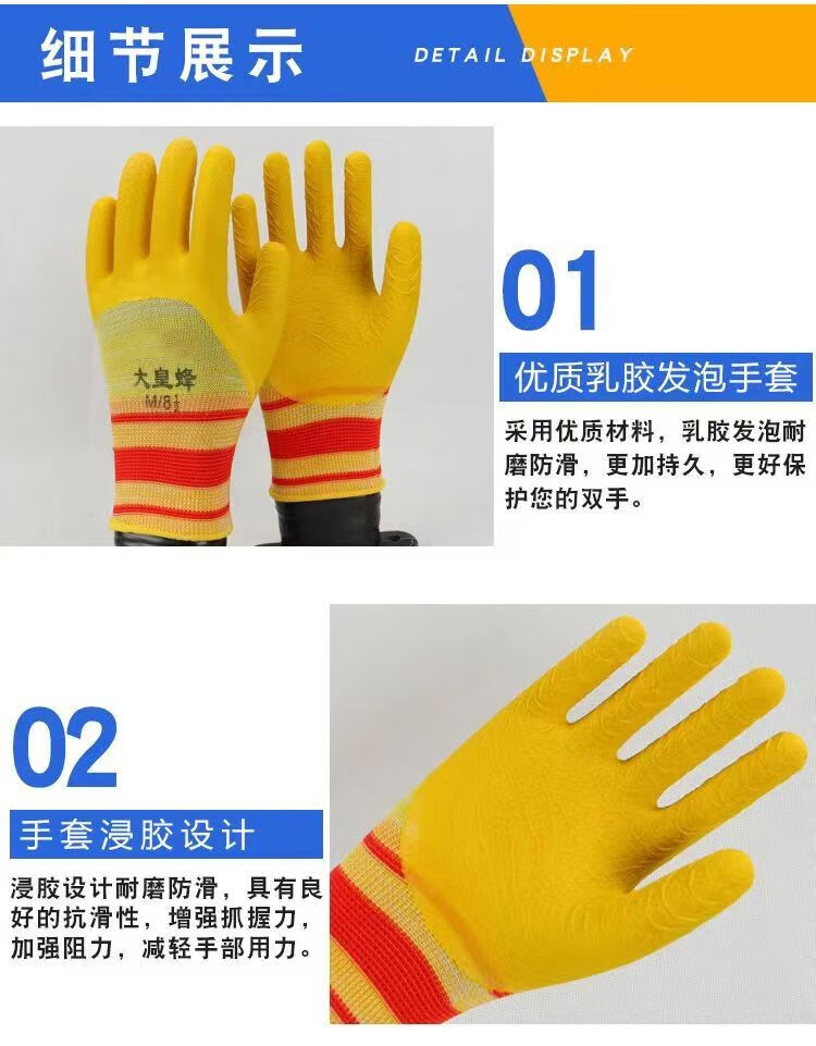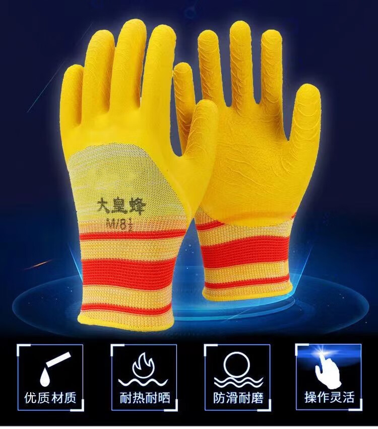 商品名称:旭利达 大黄蜂半挂皱纹手套浸胶劳保防护手套 胶手套
