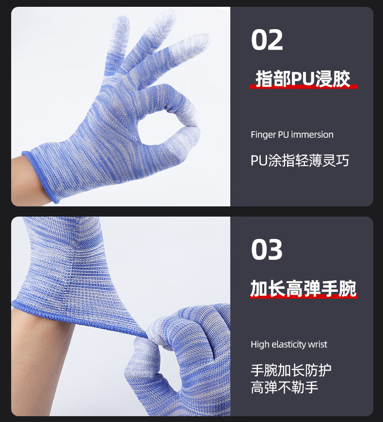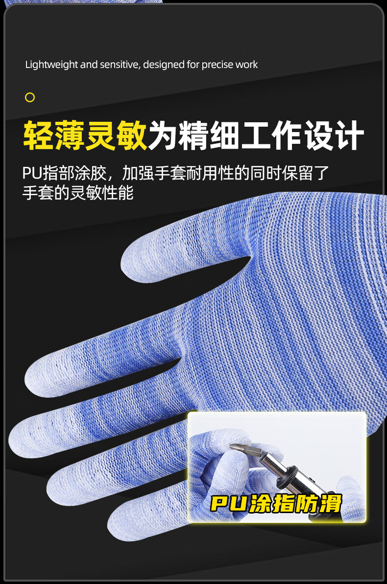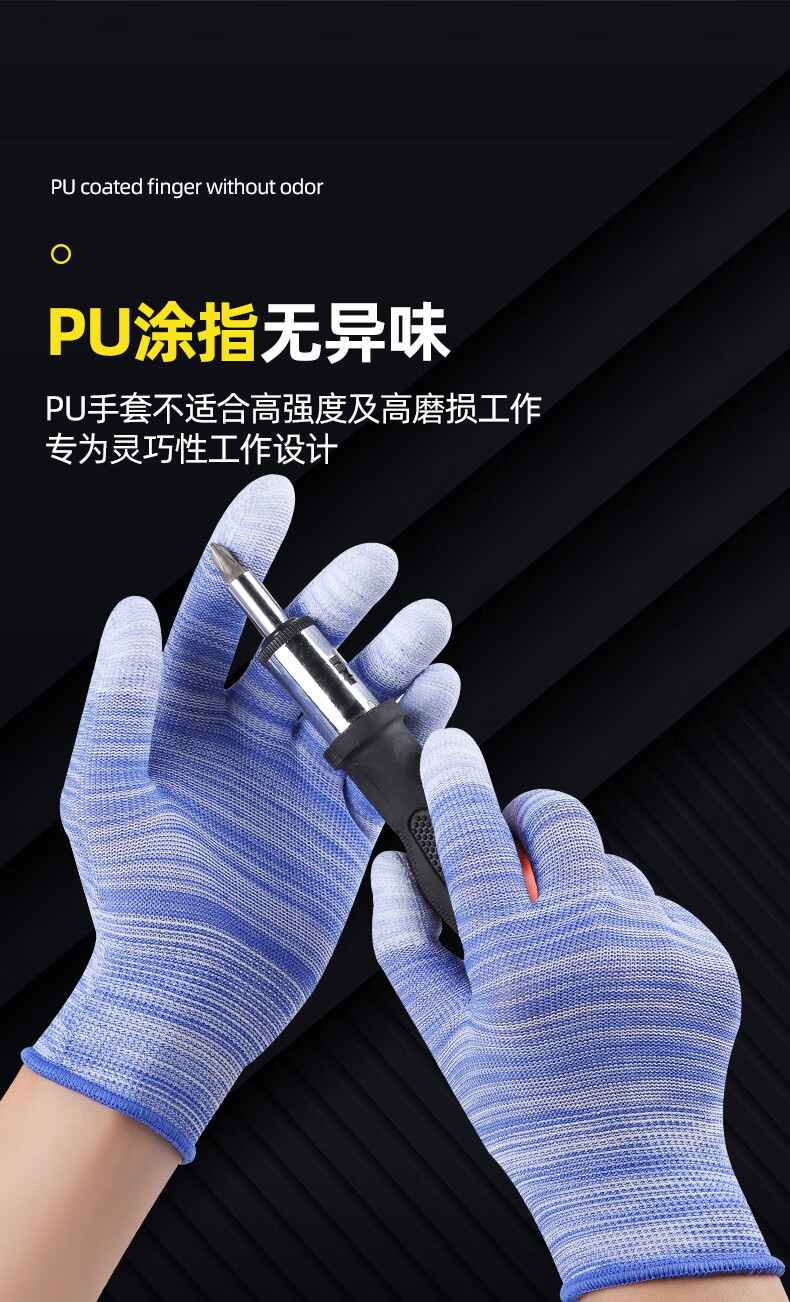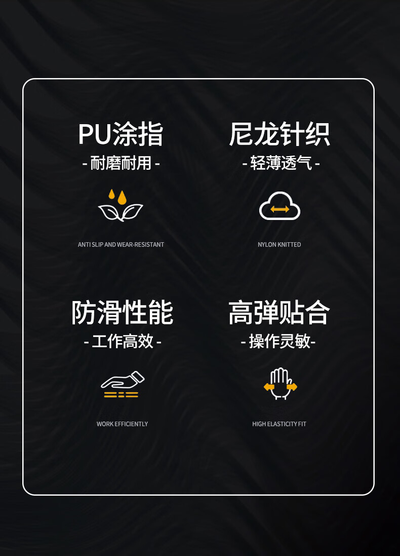 包装清单:1援手 pu涂胶指手套、涤纶手套 20cm 涂指涤纶手套
