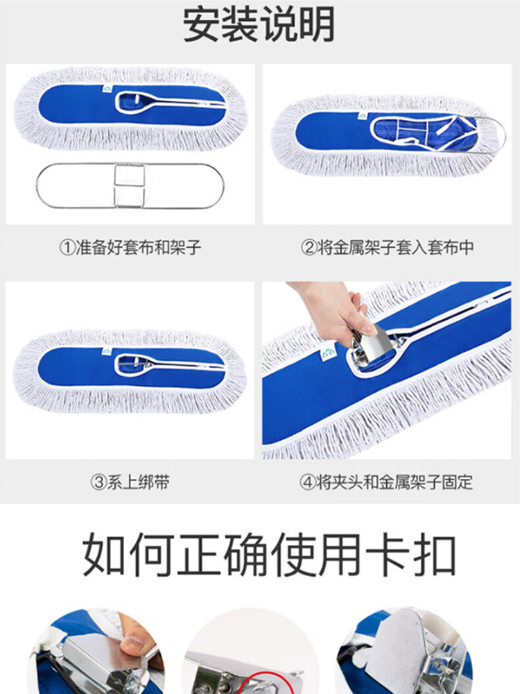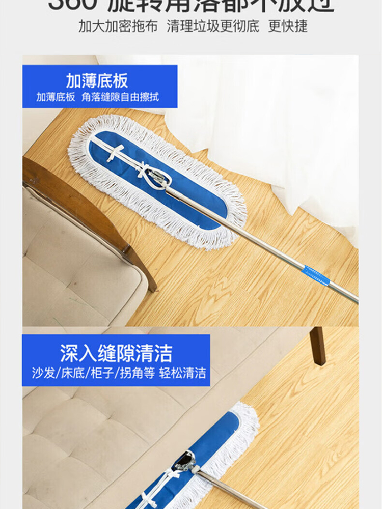 包装清单:1雷璟 平板拖把 大号尘推酒店工厂家用大拖把平拖棉线地拖排拖除尘