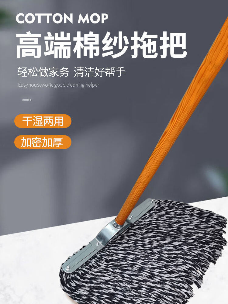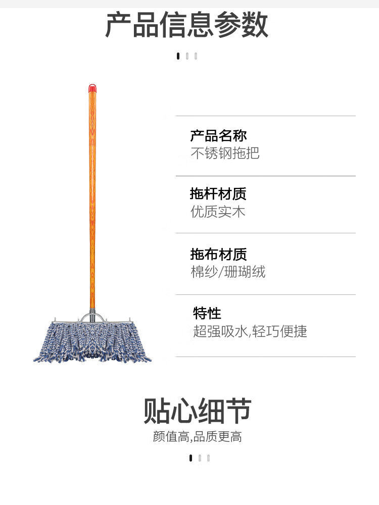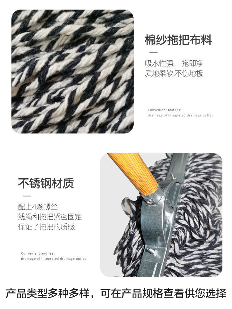 包装清单:1雷璟 棉纱拖把 吸水木杆工厂家用老式墩布物业保洁尘推大号水拖