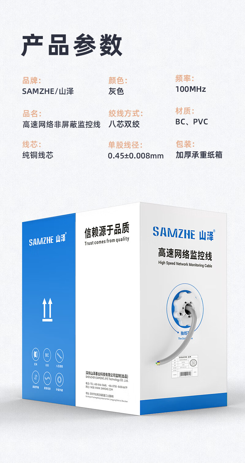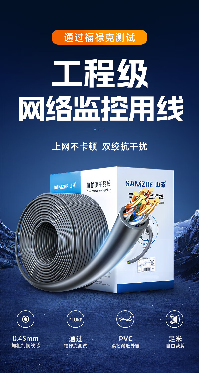 包装清单:1山泽 超五类/六类/七类/八类 千兆万兆网线纯铜芯 家装网络工程布线