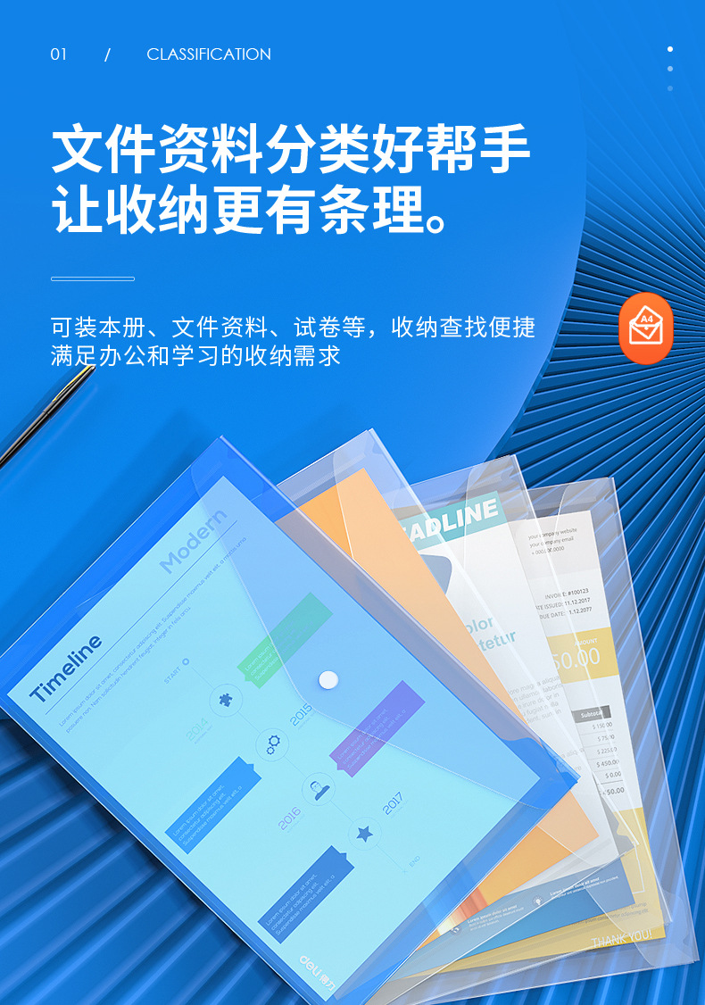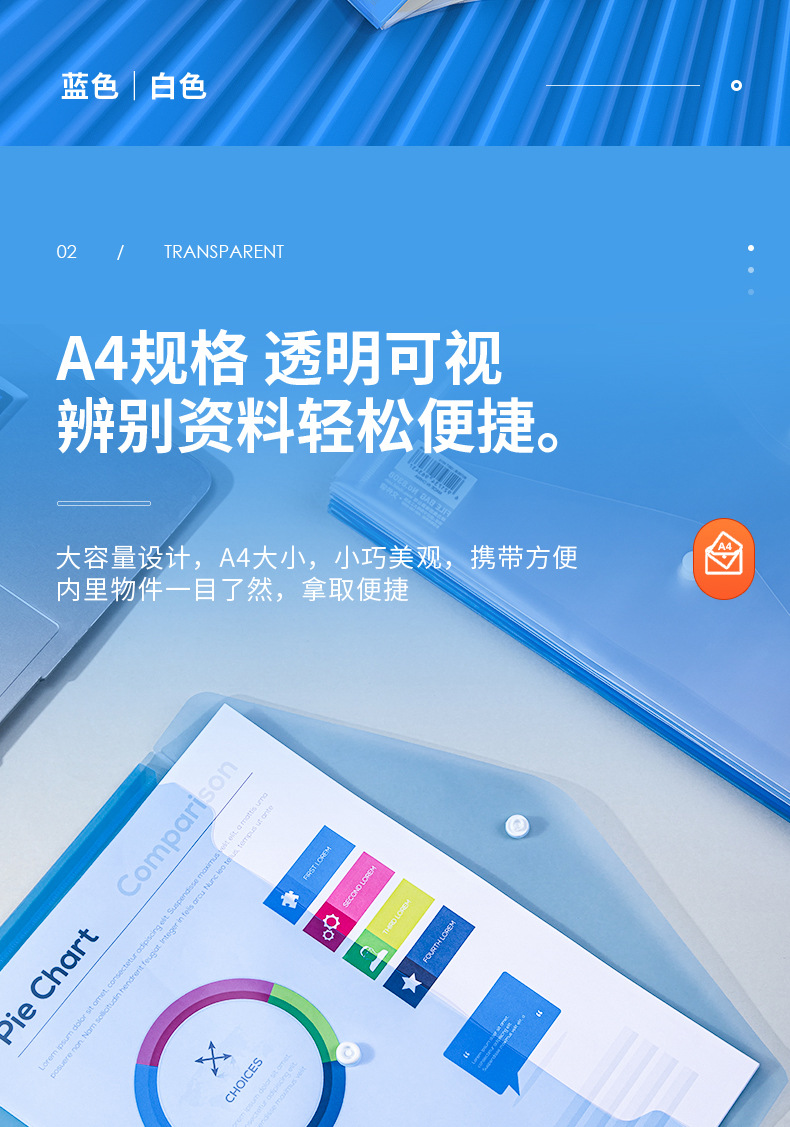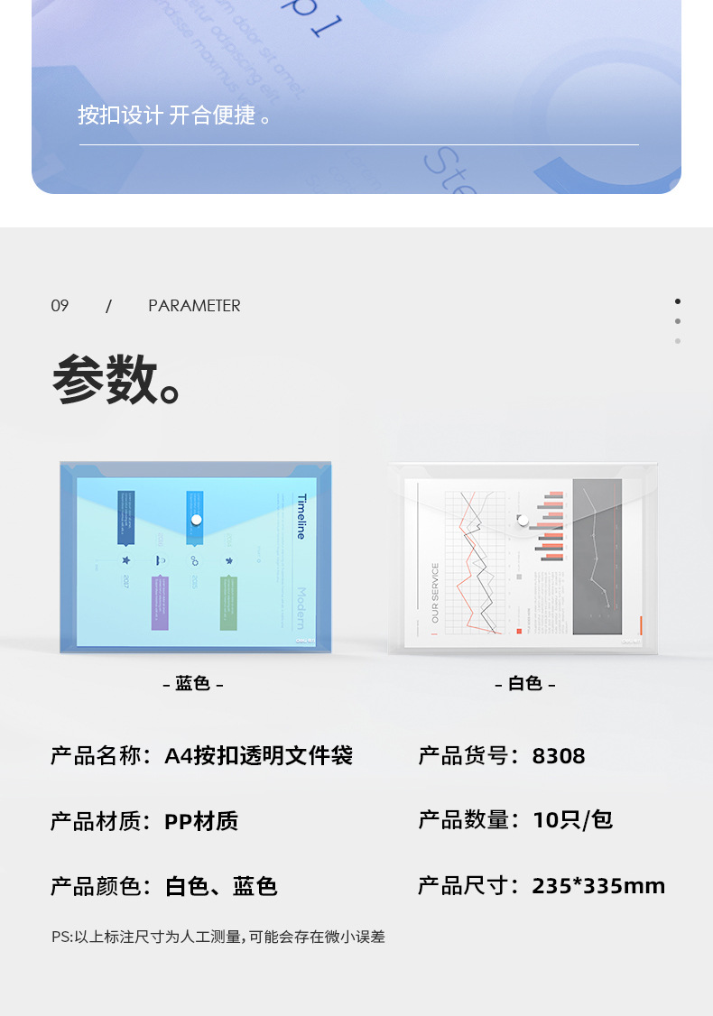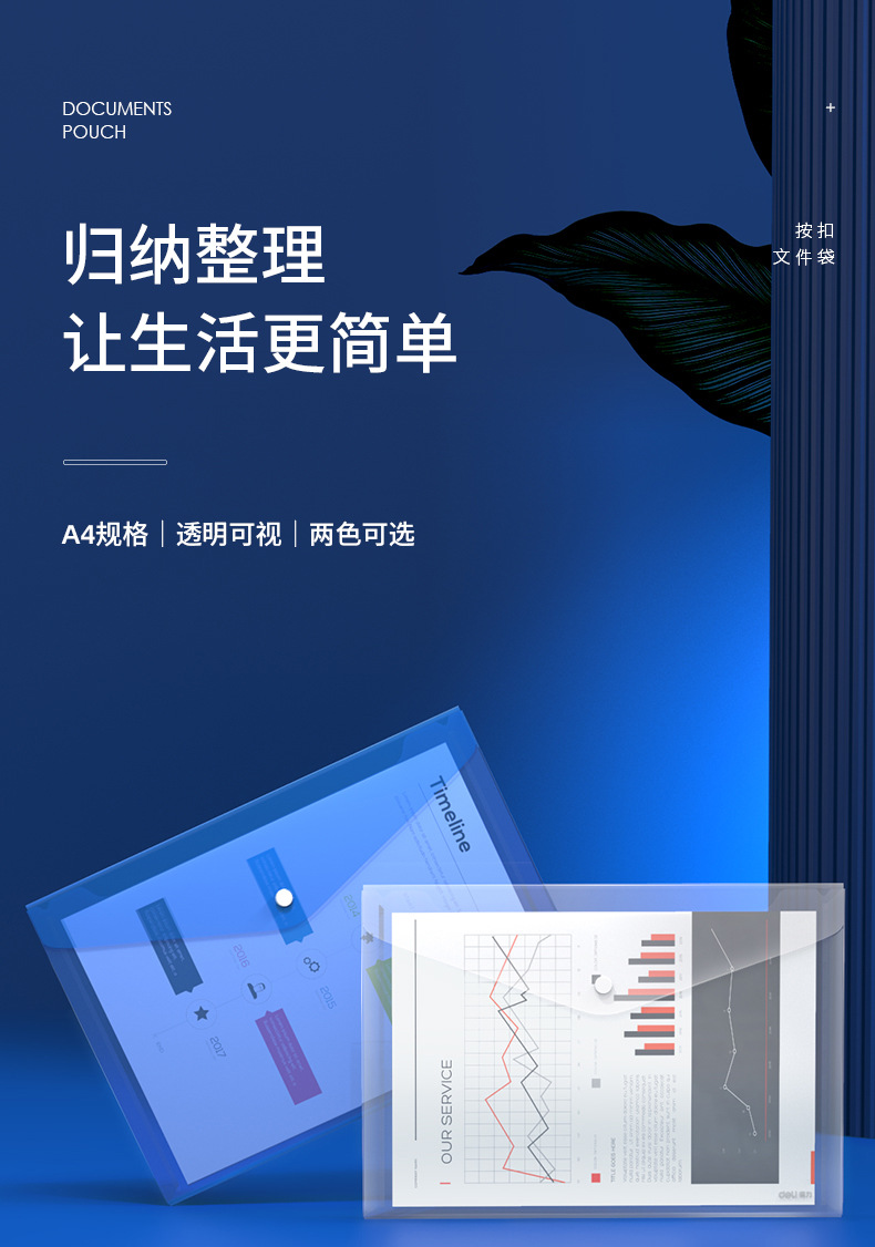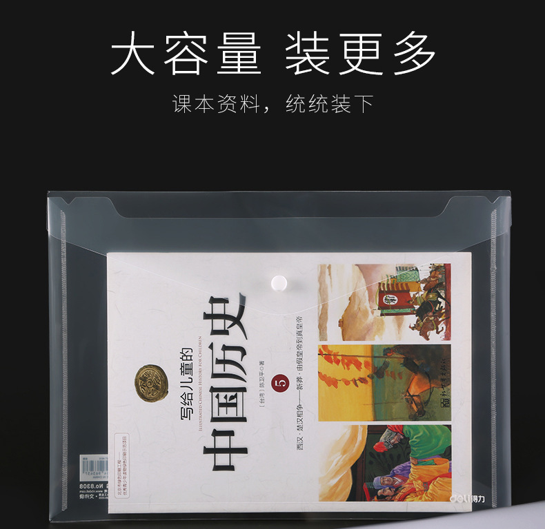 商品名称:得力8308文件袋A4透明按扣办公收纳档案袋文件袋收纳袋资料袋