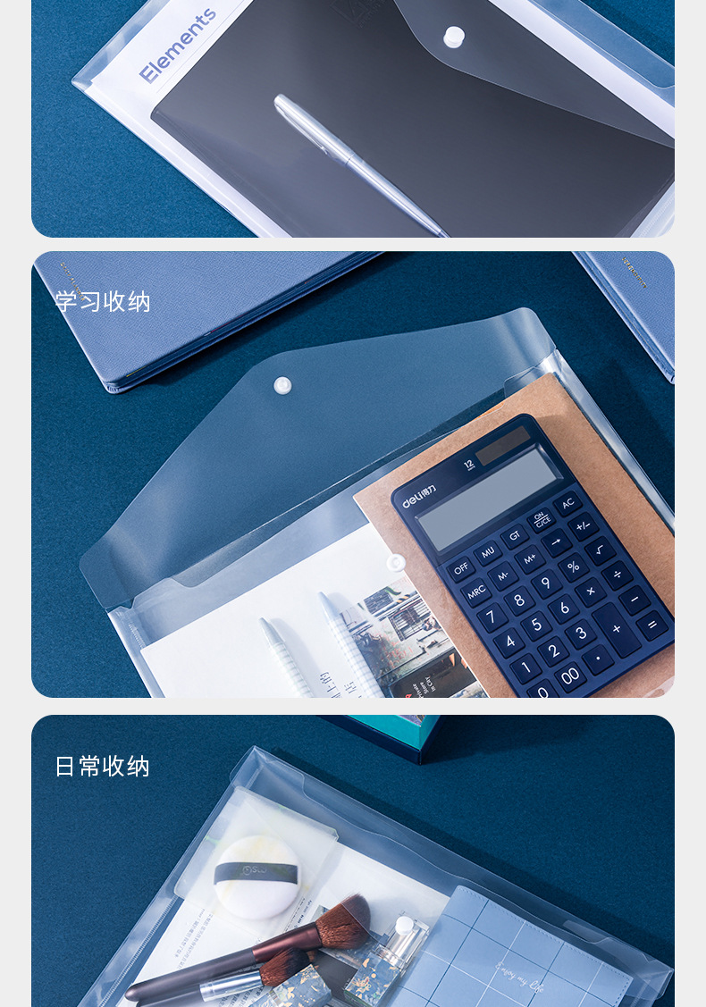 包装清单:1得力8308文件袋A4透明按扣办公收纳档案袋文件袋收纳袋资料袋