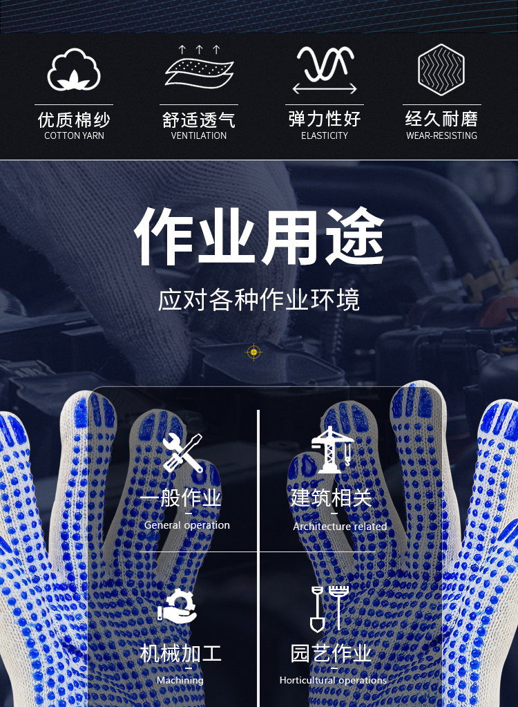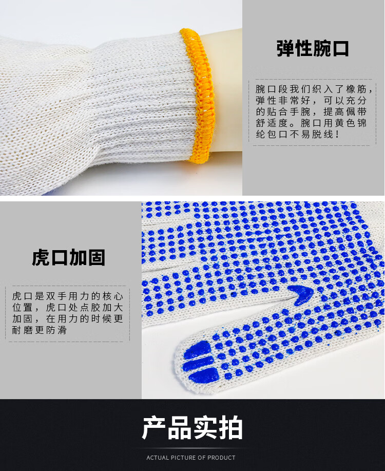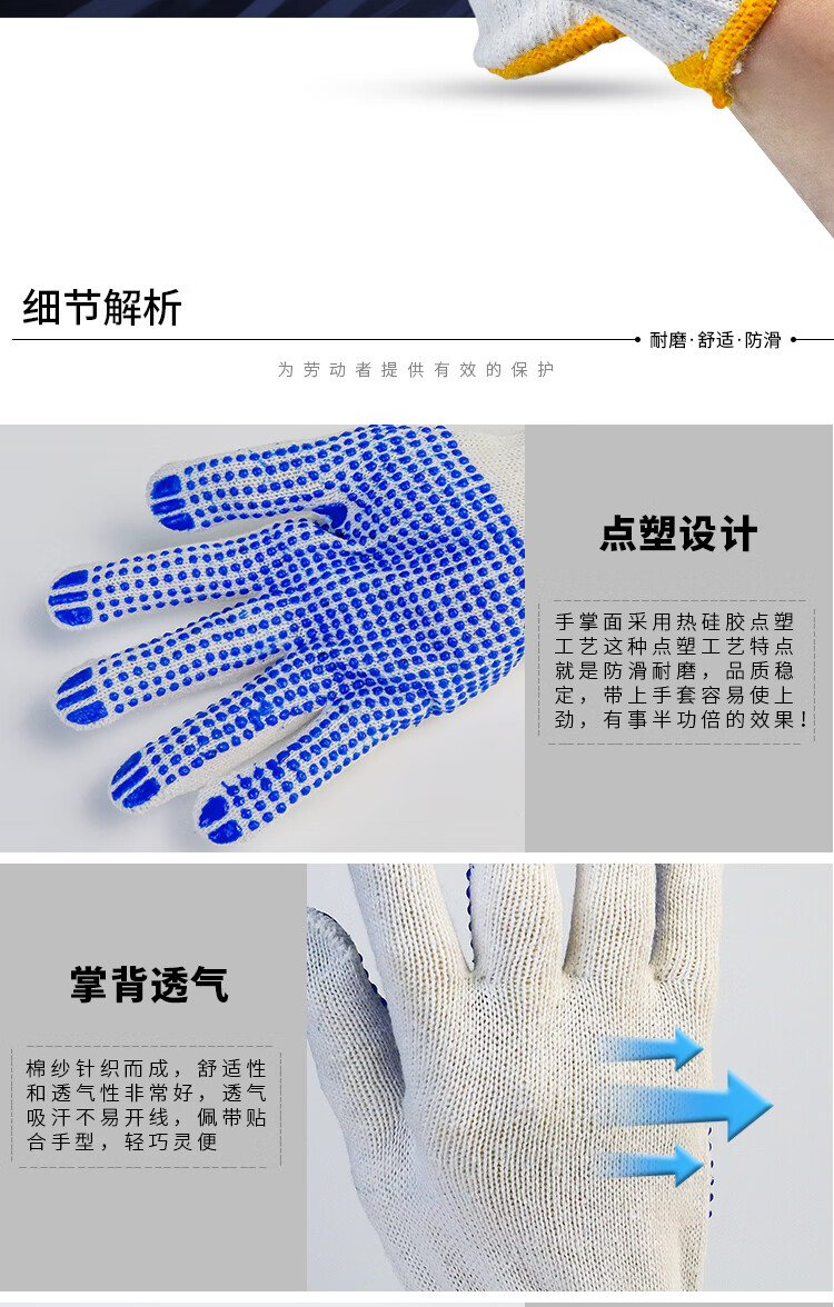 包装清单:1防滑棉线线手套 点胶550g蓝色 线手套