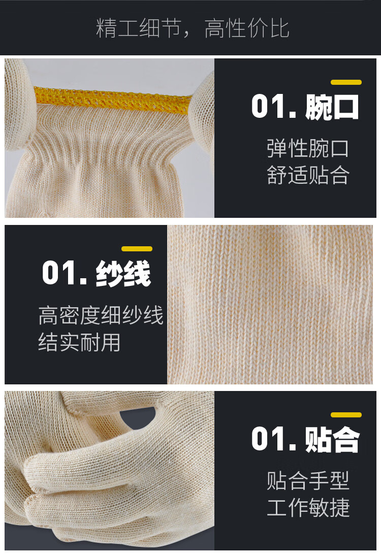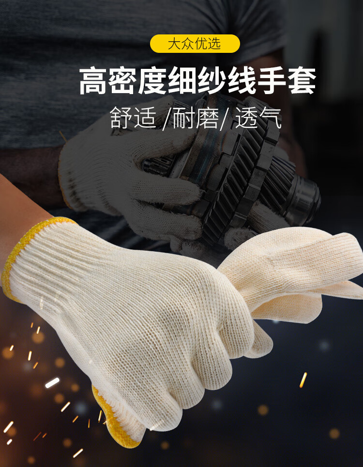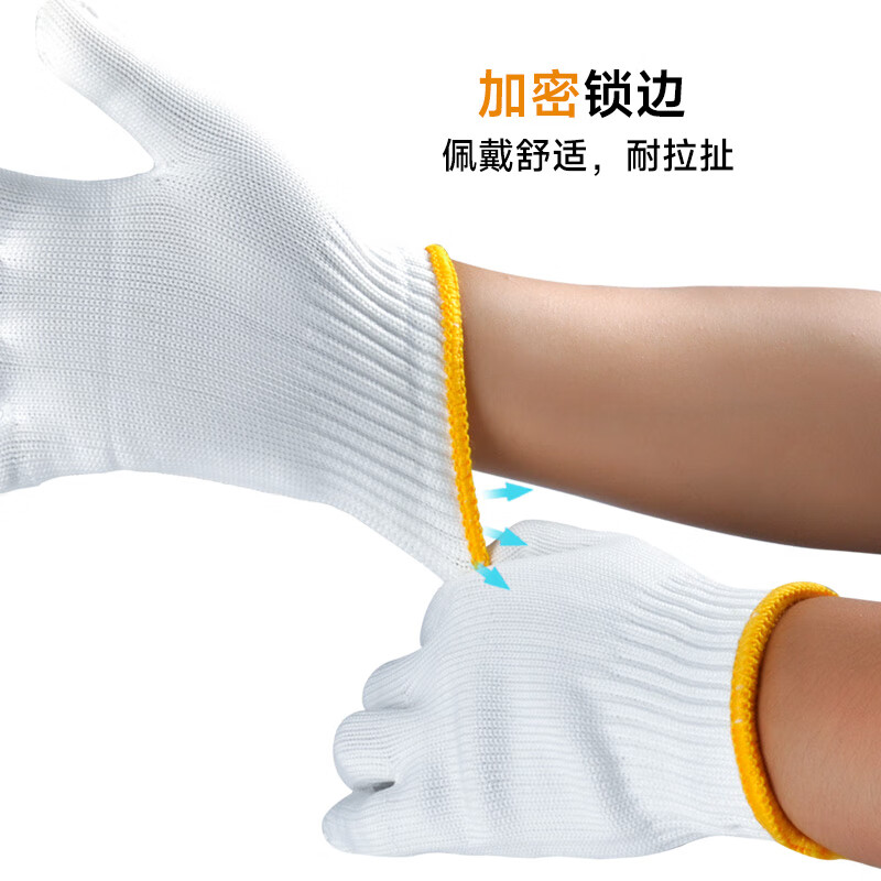 包装清单:1尼龙线手套 红边线手套 劳保手套