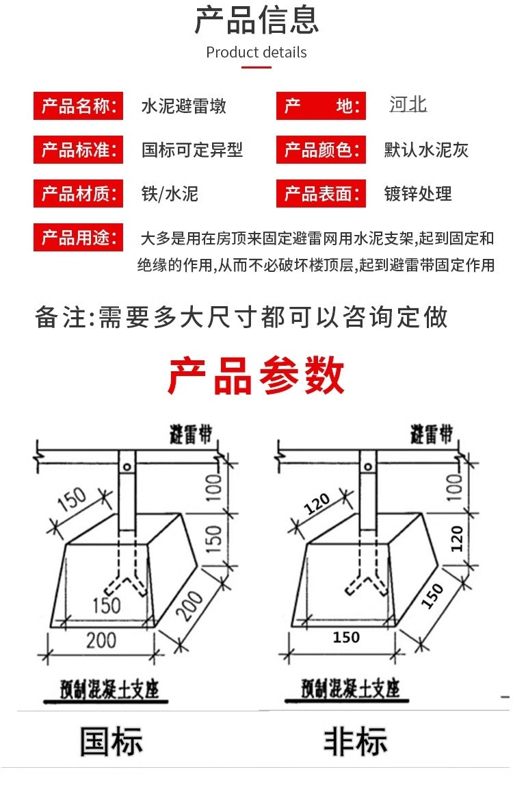 包装清单:1合恒工品 避雷水泥墩 水泥避雷墩 混凝土梯形路灯基础预制屋面楼顶防雷底座