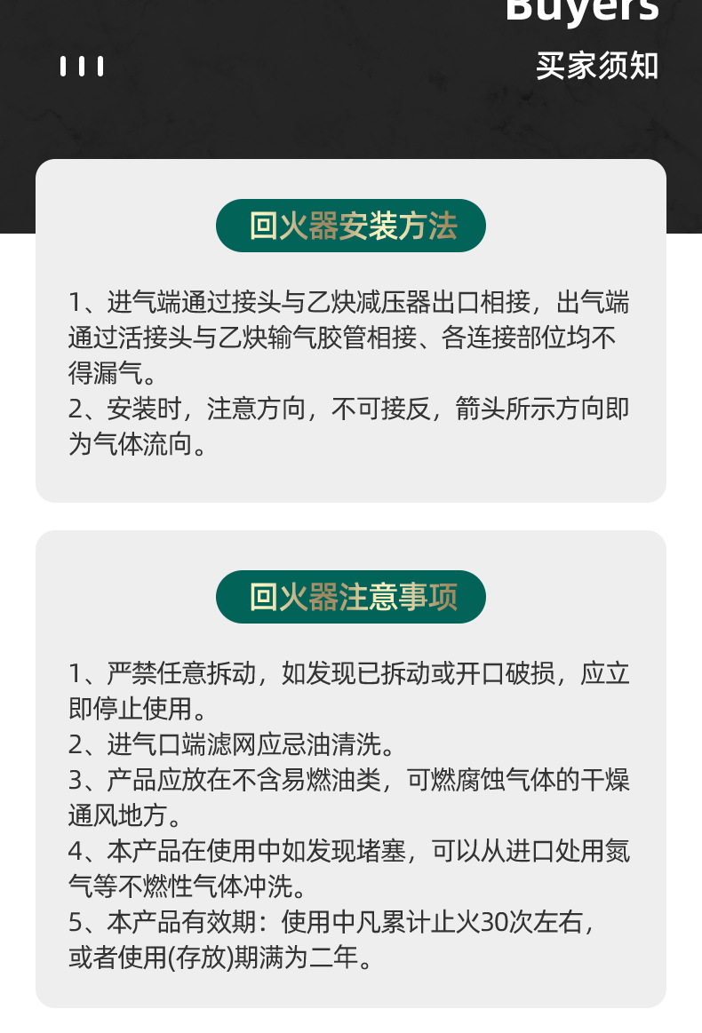 包装清单:1合恒工品 丙烷回火阀 乙炔丙烷接表减压器 回火器炬用枪用自动防止器 回火阀