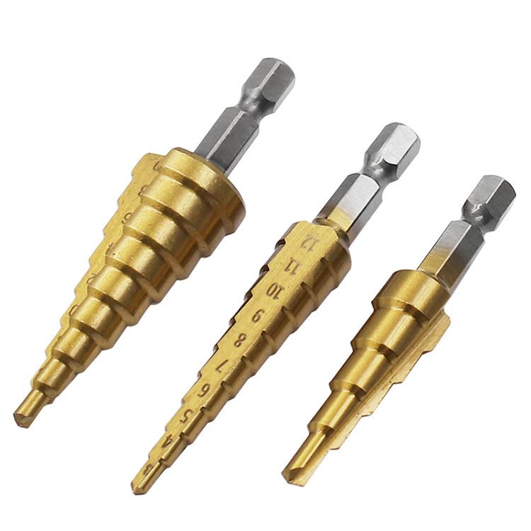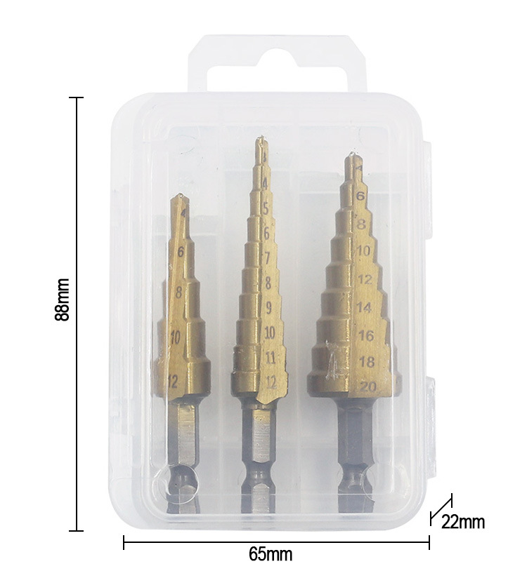 包装清单:1合恒工品 HHGP 阶梯宝塔钻 盒装六角柄镀钛直槽阶梯钻套装