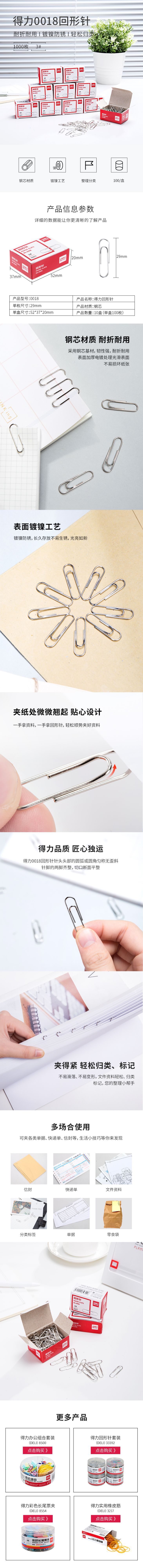 包装清单:1得力 0018回形针 银色金属回形针 曲别针财务用品办公专用