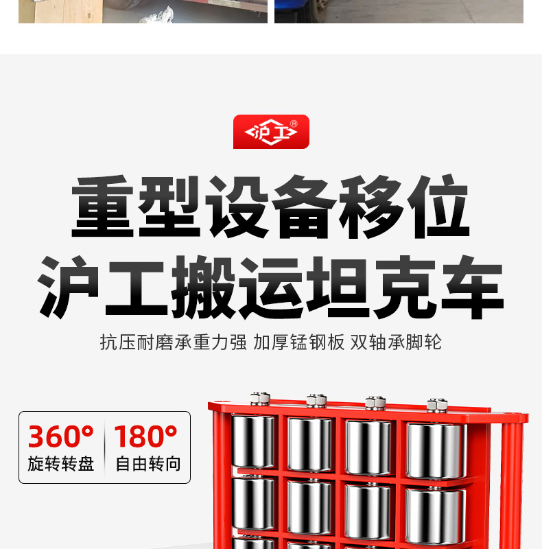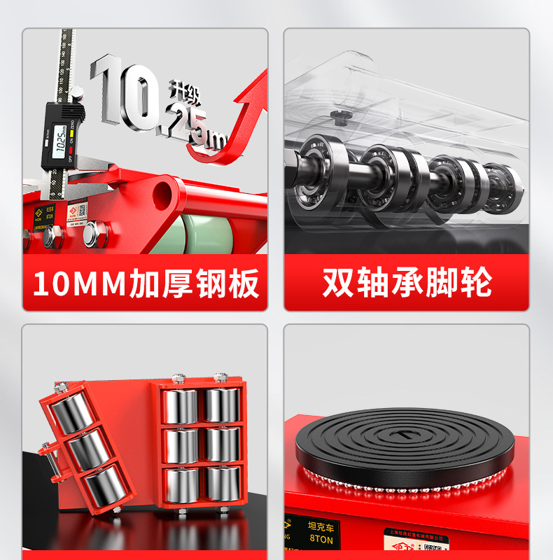 包装清单:1沪工 坦克搬运车 四轮承重共6T 重物移位器 起重装备重型搬运 坦克车