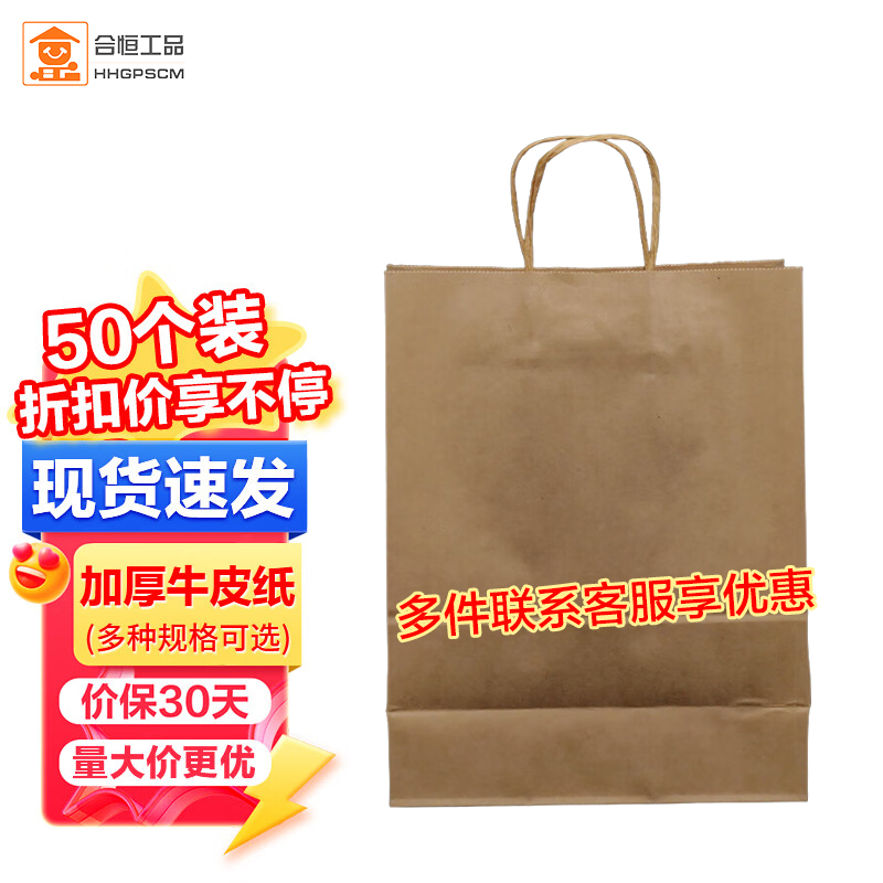 包装清单:1合恒工品 牛皮纸袋 手提纸袋子 外卖打包袋服装购物纸袋