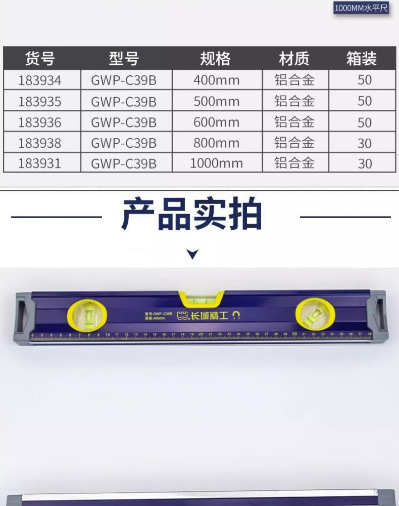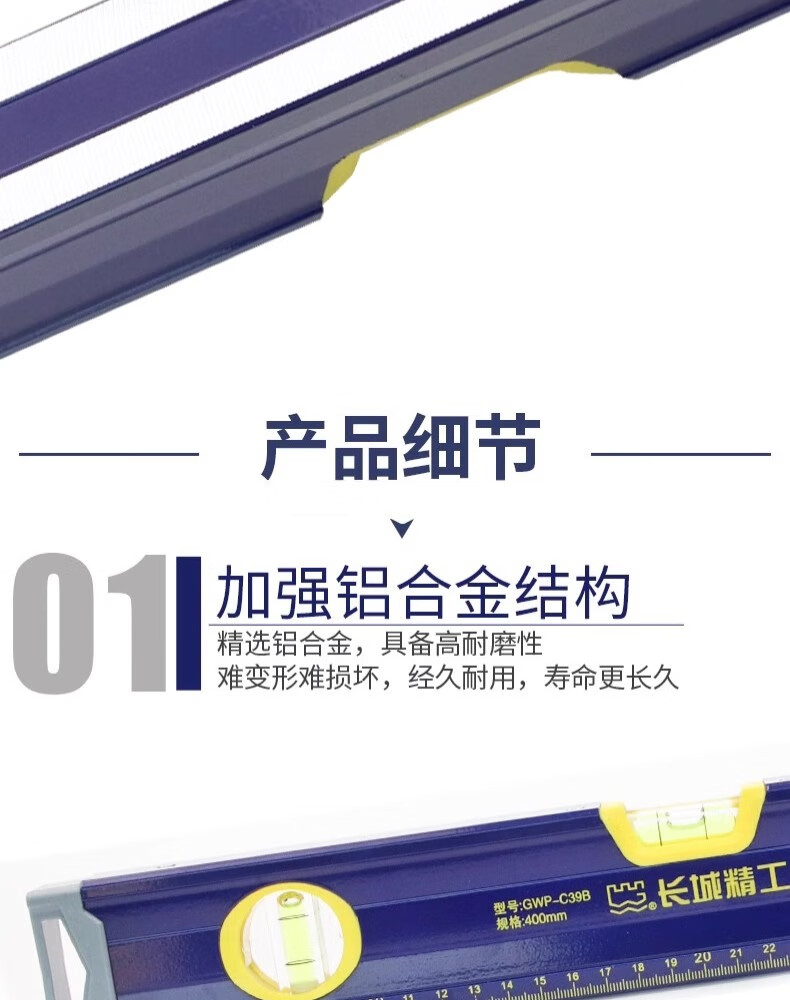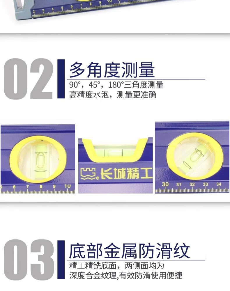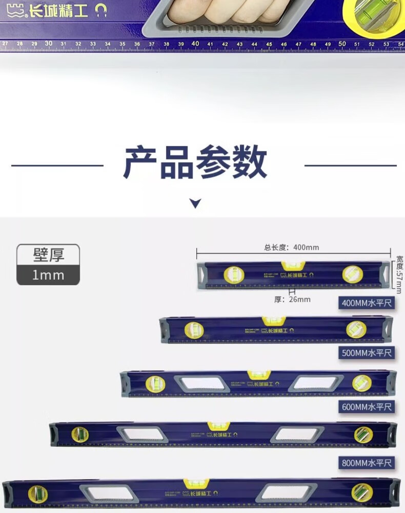 包装清单:1长城精工磁吸水平尺水平尺铝合金高精度平衡尺磁性平水尺家用装修测量工具带强磁