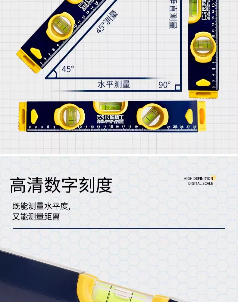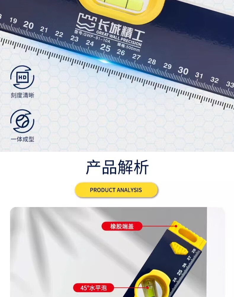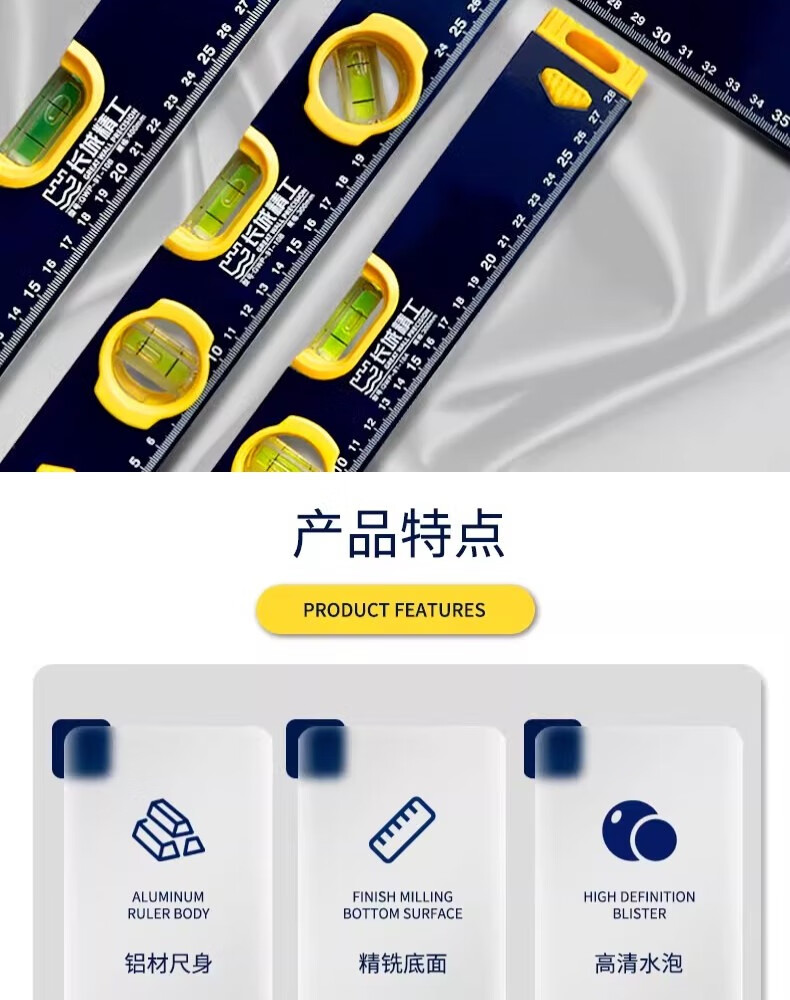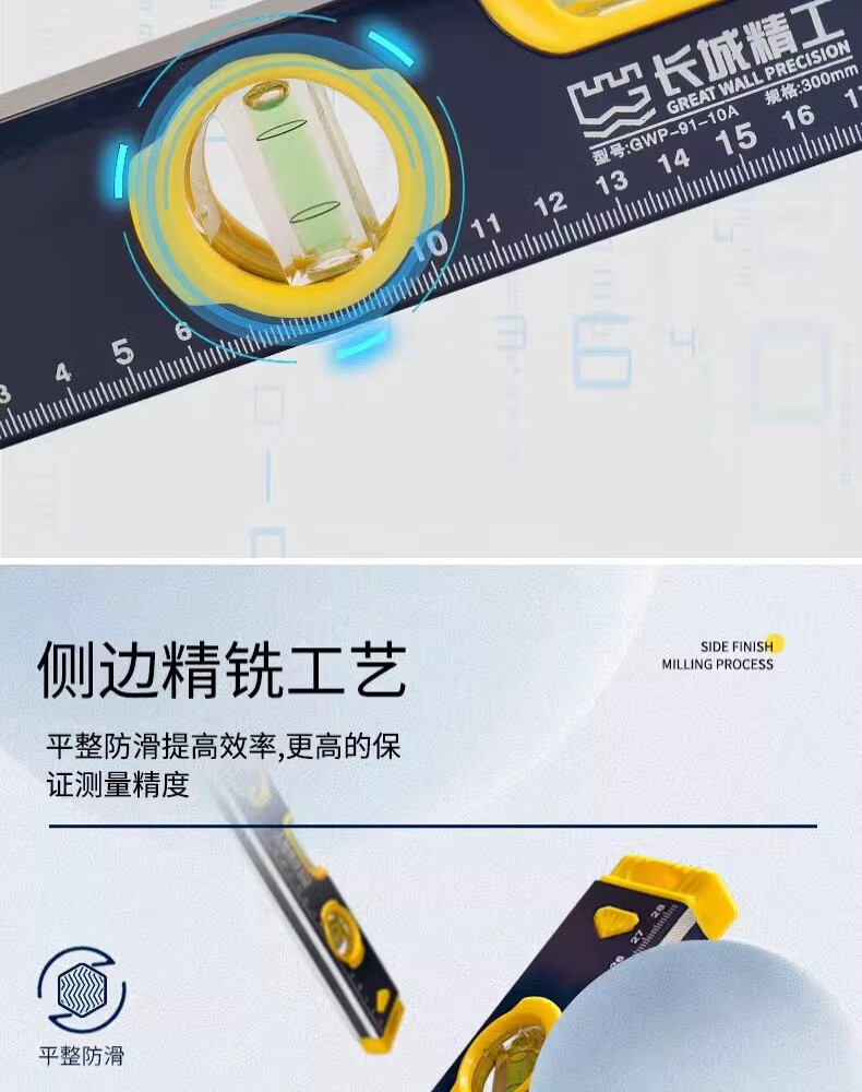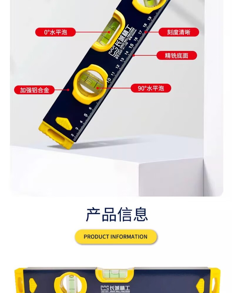 包装清单:1长城精工精铣底水平尺铝合金高精度工业级平水尺木工家装验收测量维修靠尺 两个水泡