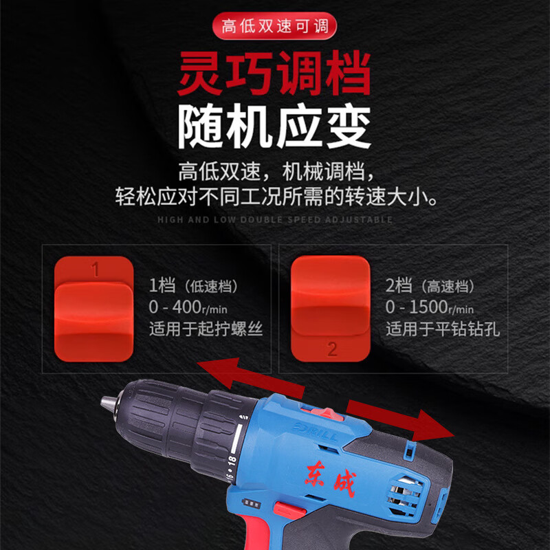 东成充电式无刷起子电钻DCJZ1603(E型)(55N.M)16V2.0ah*2电动工具多功能东城螺丝起子机