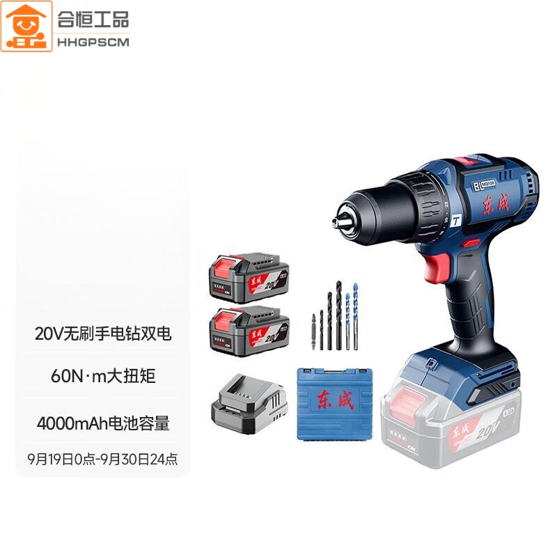 东成充电式无刷起子电钻DCJZ2060AM(60N.M)20V2.0ah*2双速正反转锂电钻