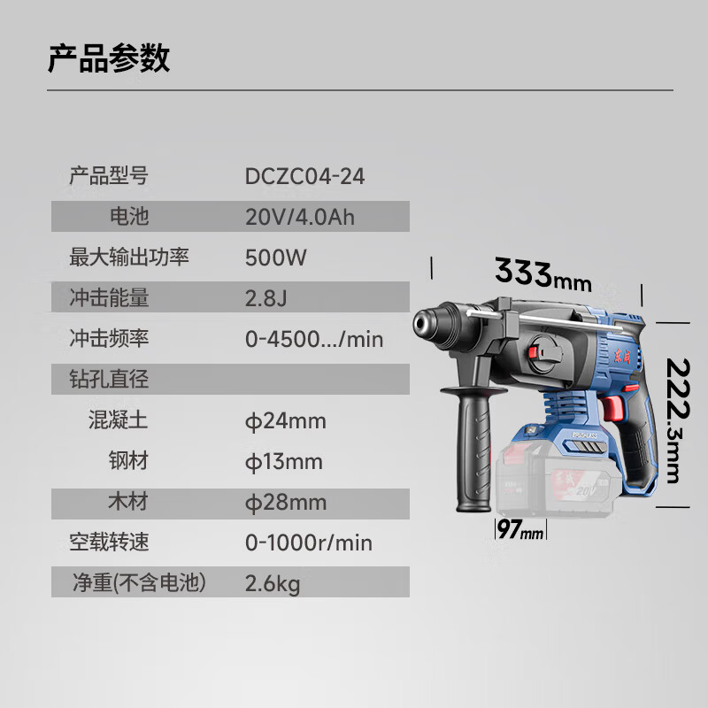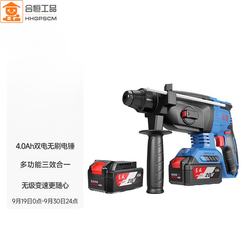 东成充电式无刷电锤DCZC04-24(E型)20V4.0ah*2充电工业级无刷冲击钻电镐电钻三用