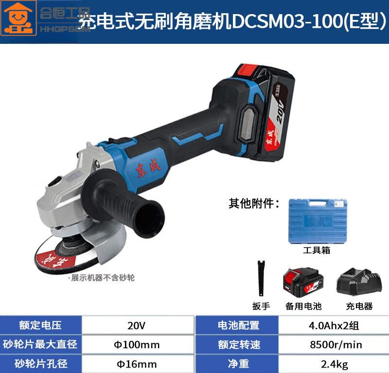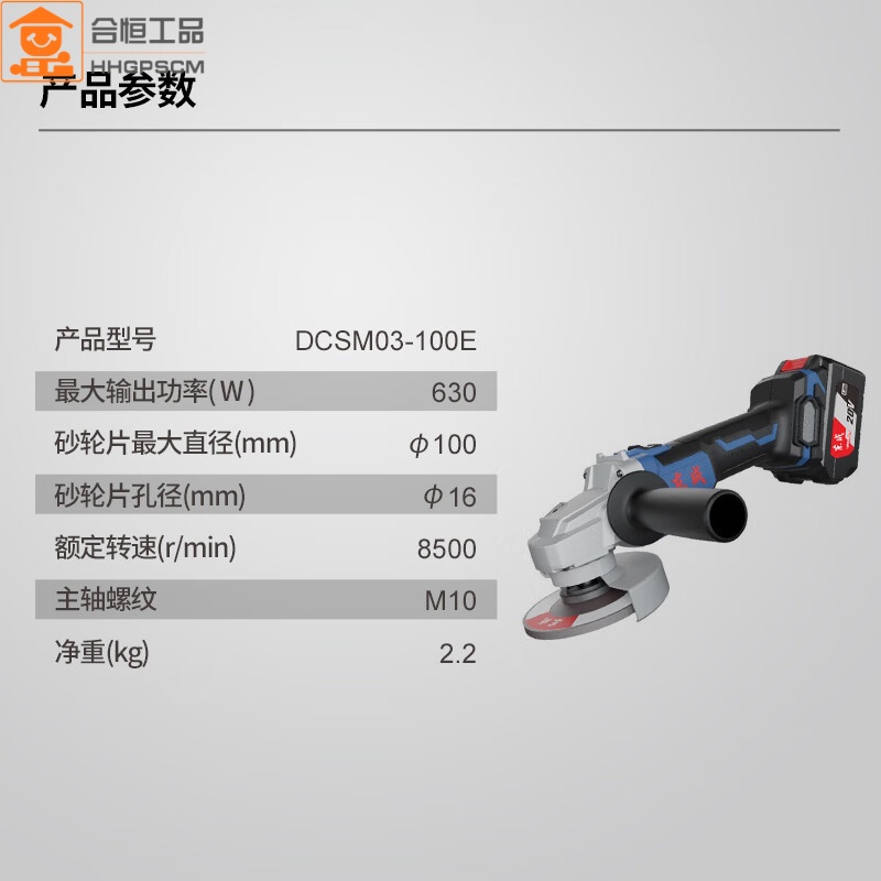 东成充电式无刷角磨机DCSM03-100(E型)20V4.0ah*2家用切割抛光手磨机